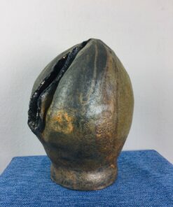 Vintage Absztrakt Fekete Mázas Kerámia Váza, Gruber
