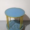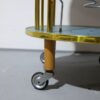 Retro német design zsúrkocsi az 1970-es évekből, jellegzetes világoskék lappal, arany színű vázon.