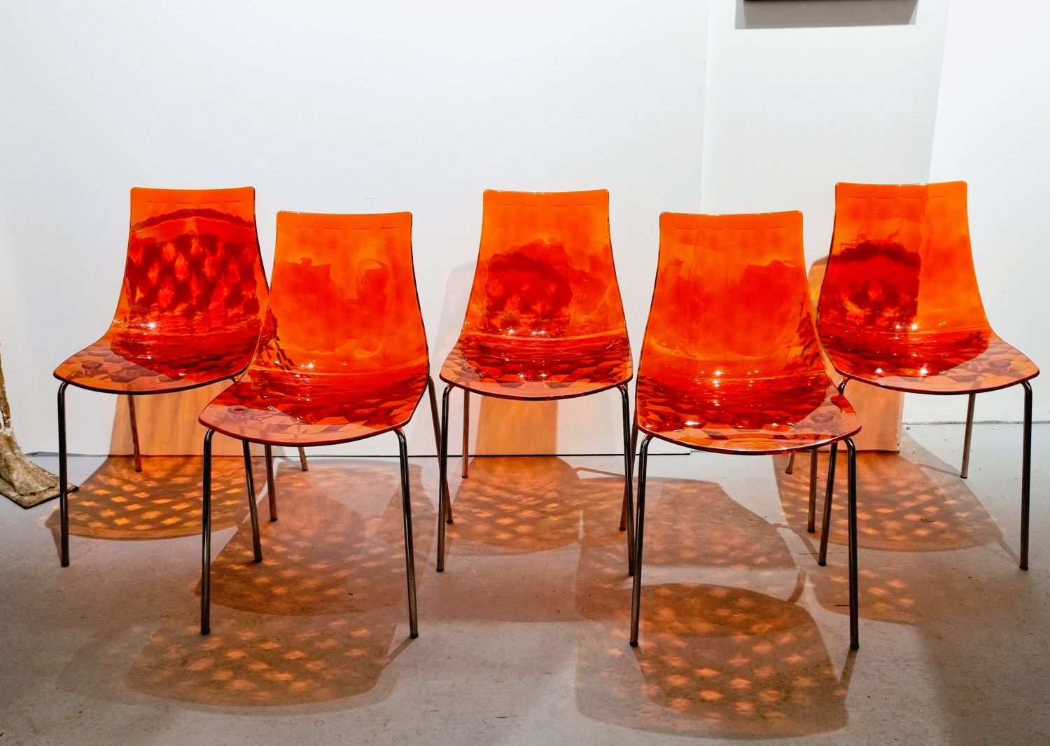 Az olasz Calligaris márka egyik legikonikusabb darabja, az Ice chair. Krómozott fémlábak és az áttetsző ülőrész miatt a szék nem nehezíti el a teret, kisebb helyiségekben is jól mutat. Belső felülete texturált, gyémántmintás csiszolásra emlékeztet, ami megtöri a fényt, így a szék drágakőszerűen csillog. Haszn. er, kis karc