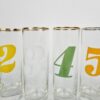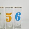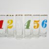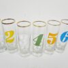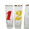 Számozott long drinkes pohárkészlet, az 1970-es évekből. Korának megfelelő állapotban.Méretei:15x5x5 cm