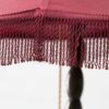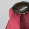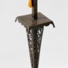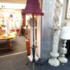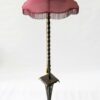 1920-30 körül készült, bronz és vörösréz. Romantikus hangulatú, korai art deco állólámpa, igazi klasszikus, bordó rojtos búrával és a korra jellemző egymásba fonódó inda díszítéssel.