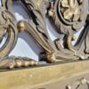Antik, aranyozott impozáns méretű falitükör a 1880-90-es évekből. Tetején gyönyörű, részletes, gazdagon díszített ornamentika. A keret hiányos ( a tetején lévő sas egyik szárnya hiányzik), de korának megfelelő. A tükör széle csiszolt, eredeti. Mérete: 160x65x3. Súlya: 6 kg.