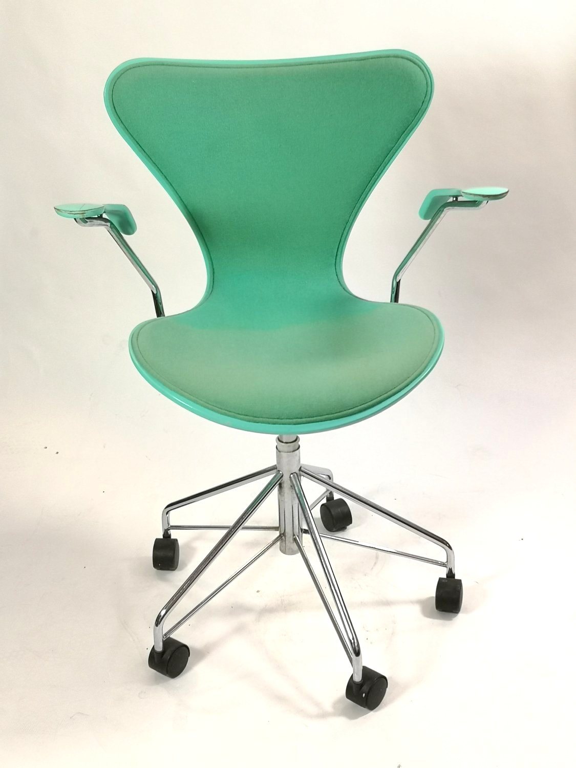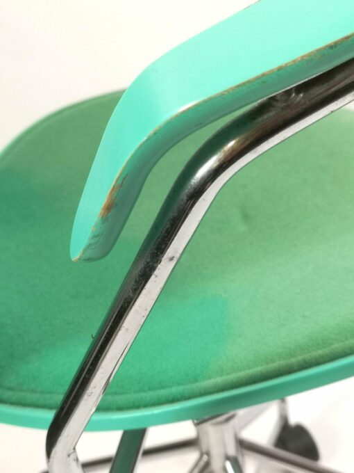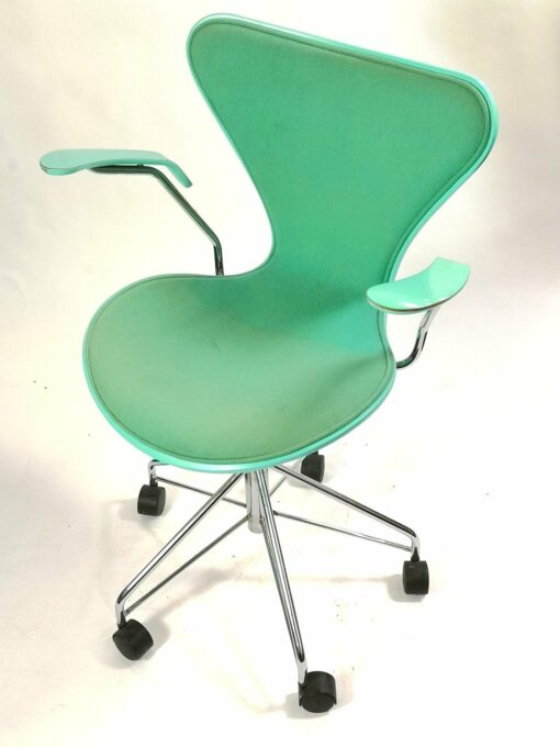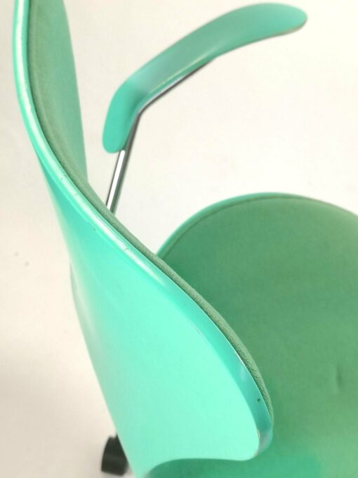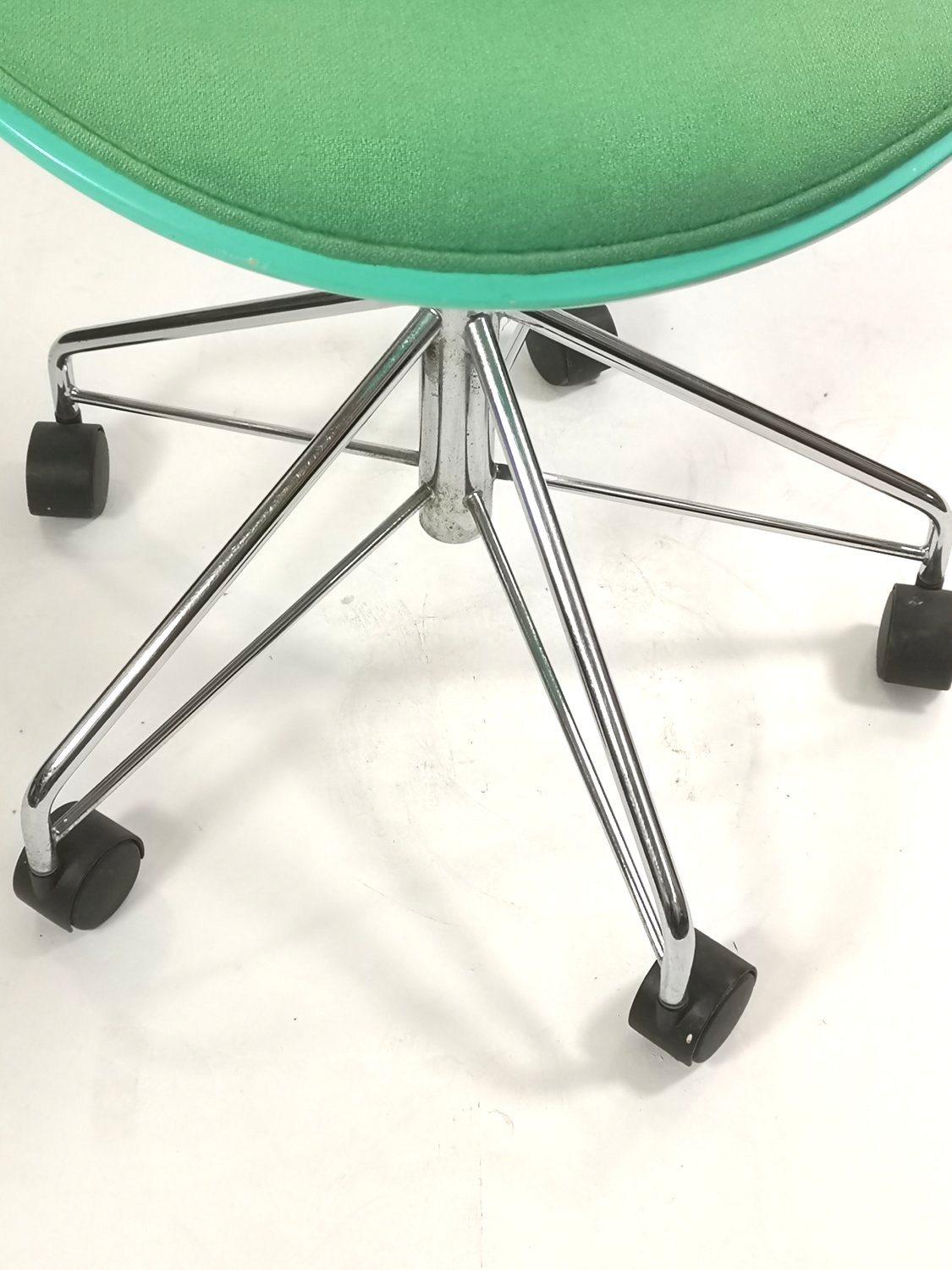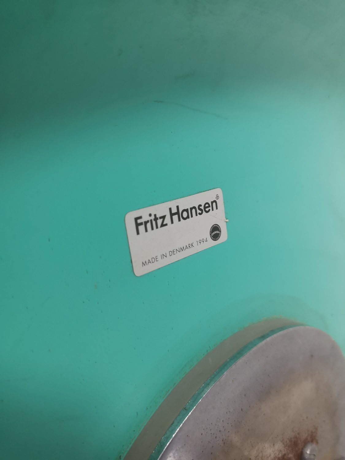 Fritz Hansen gurulós szék, jelzett 1990-es évek eleje. Csodás élénk szín, funkcionalitás amely megfelel a modern életstílus igényeinek-beltéren és kültéren egyaránt. Ikonikus, maradandó formavilág jellemzi.Méretei: 62 x 54 cm. Jó állapotú.