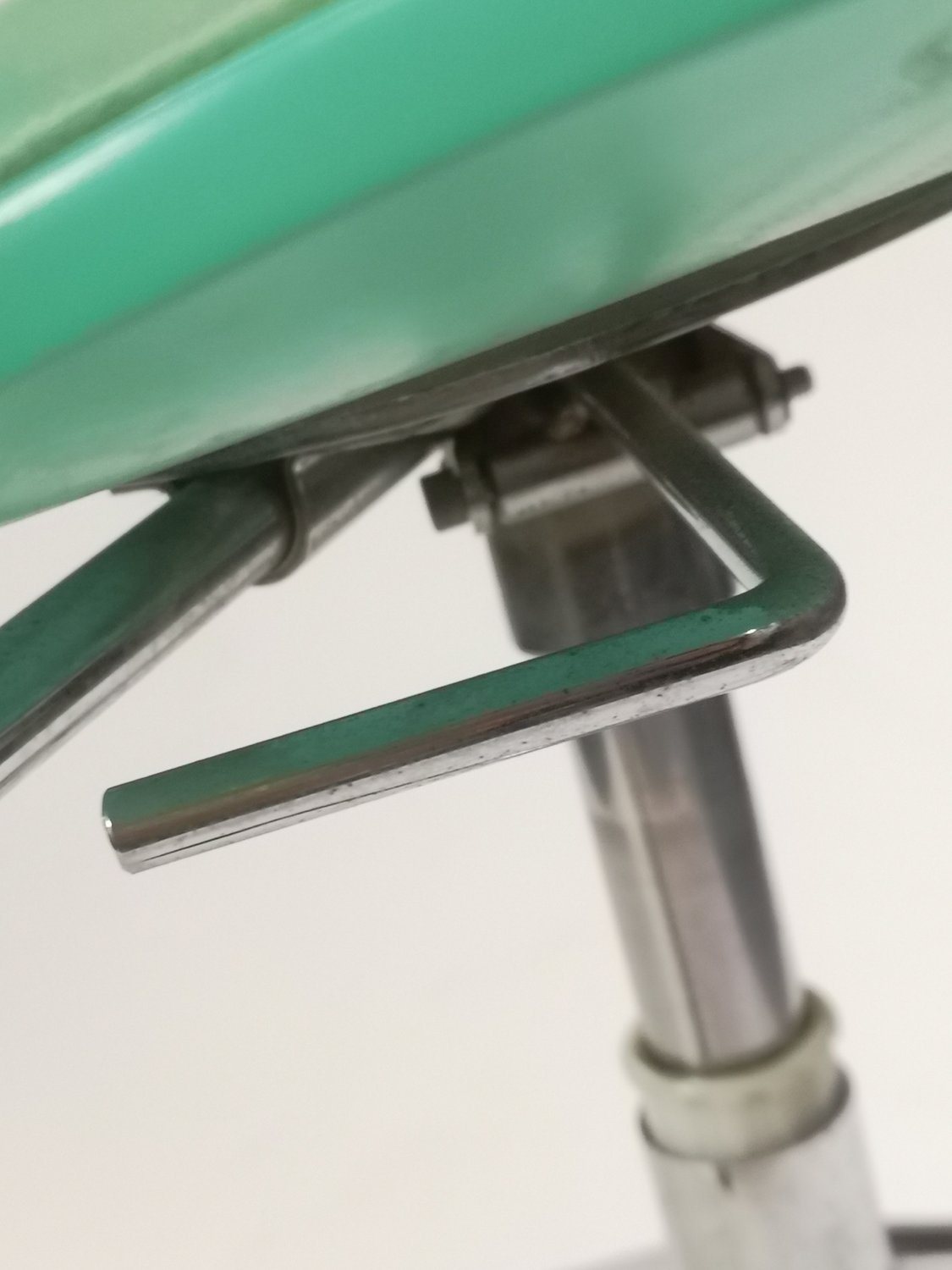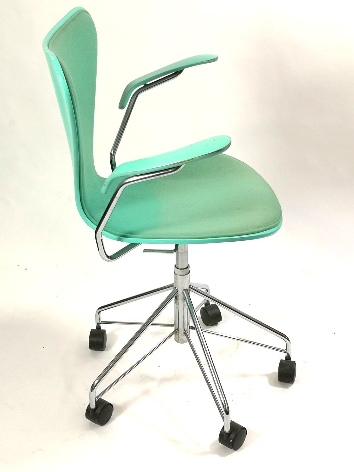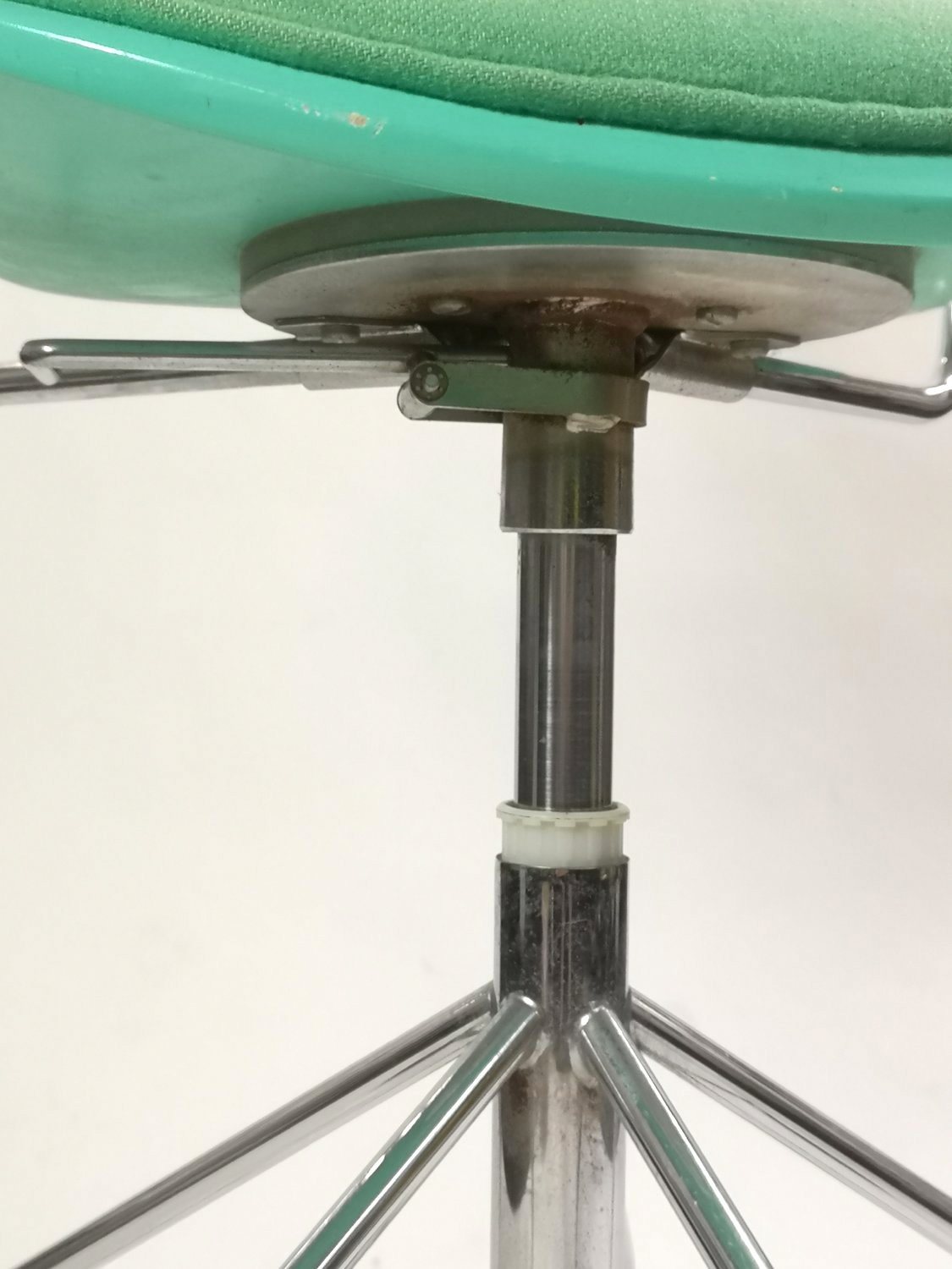 Fritz Hansen gurulós szék, jelzett 1990-es évek eleje. Csodás élénk szín, funkcionalitás amely megfelel a modern életstílus igényeinek-beltéren és kültéren egyaránt. Ikonikus, maradandó formavilág jellemzi.Méretei: 62 x 54 cm. Jó állapotú.