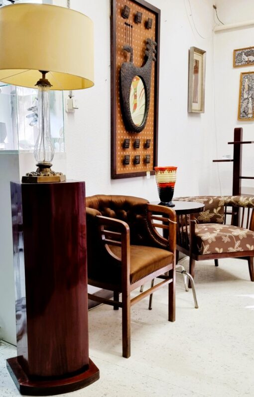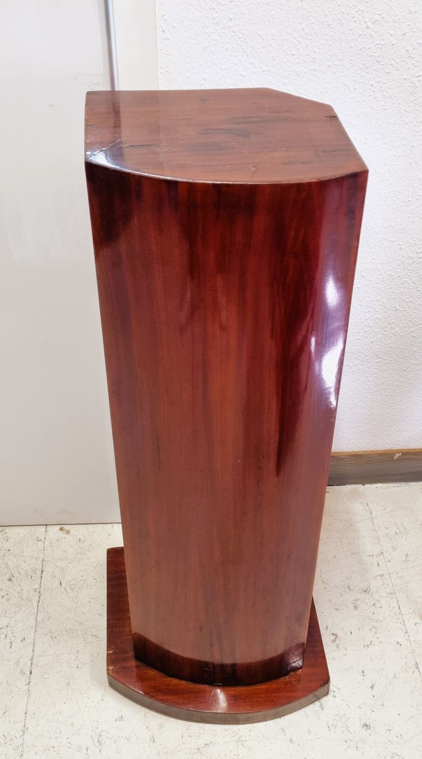 Art deco stílusú fa posztamens az 1920-as évekből. Szobrok, vázák egyéb dísztárgyak elhelyezésére szolgál, de lehet félig önálló díszítő funkciója is. Kitűnő állapotban van, modernista és antik enteriőrben is kitüntetett helyet foglal el. Méretei: 95x35x35cm