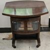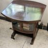 Art deco italszervirozó az 1930-as évekből. Esztétikus, ízléses funkcionális kiegészítő bútordarab.Lábára szerelt görgői miatt könnyen mozgatható, elöl hátul nyitható. Korának megfelelő állapotú. Méretei: