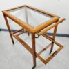 Art Deco zsúrkocsi,kivehető tálcákkal ,gördülő kerekekkel ,szép fogantyúval.Mozgatás esetén a polcok stabilak.Az 1930-as években készült csinos kis kiegészítő bútor.Állapota korának megfelelő.