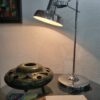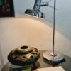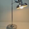 Modern, letisztult formavilágú, Heller Sándor által tervezett, állítható asztali lámpa az 1970-es évekből. Kitűnő állapotban, a lámpatesten enyhén kopott a krómozás.
