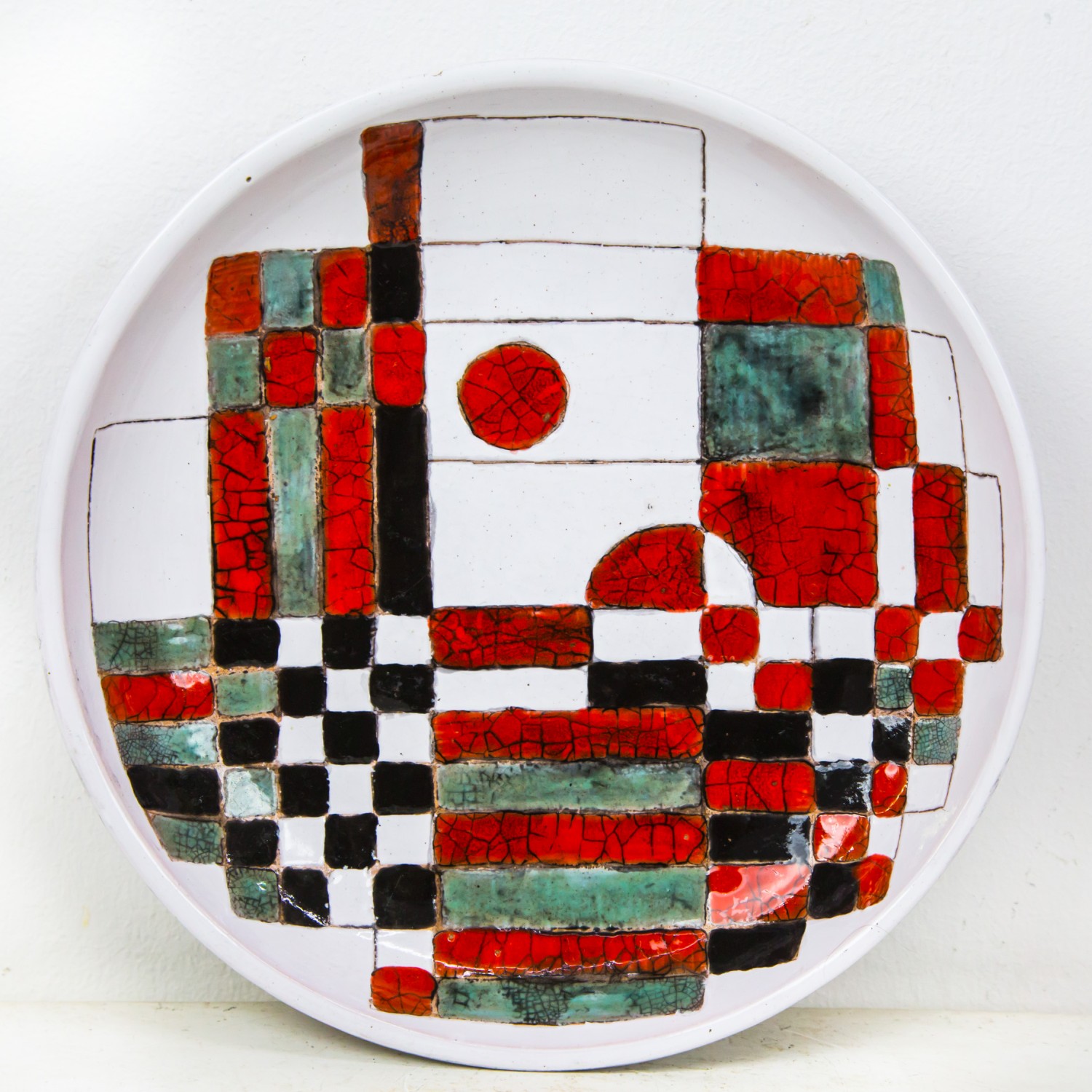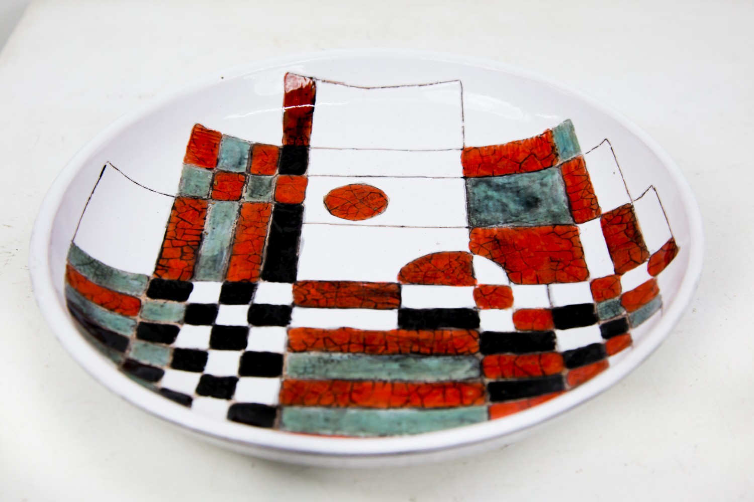 Mid-century kerámia dísztányér, hátoldalán jelzett: H.