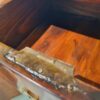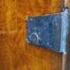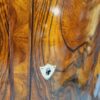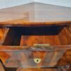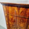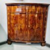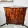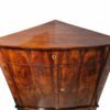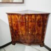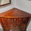 Emblematikus és praktikus kiegészítő bútordarab, mahagónira pácolt diófából. Az 1830-as évek biedermeier stílusát képviselő, egyedi kabinetszekrény. Ideális formája és méretei miatt könnyen beilleszthető egy modern, letisztult, és egy antik hatású lakás atmoszférájába is. Szép állapotban. Méretei: 105x105x6m cm. Súlya: 25 kg.