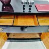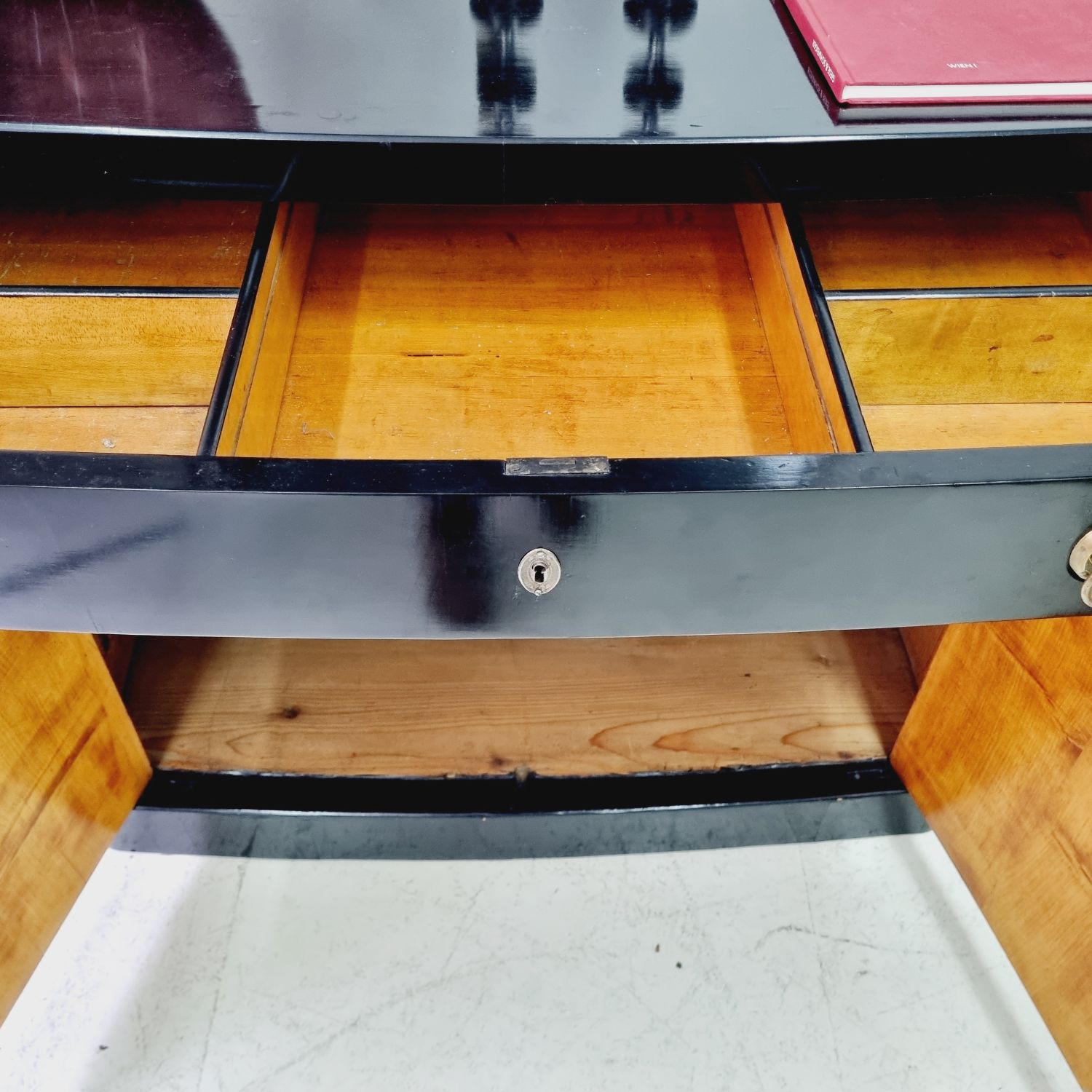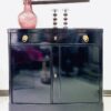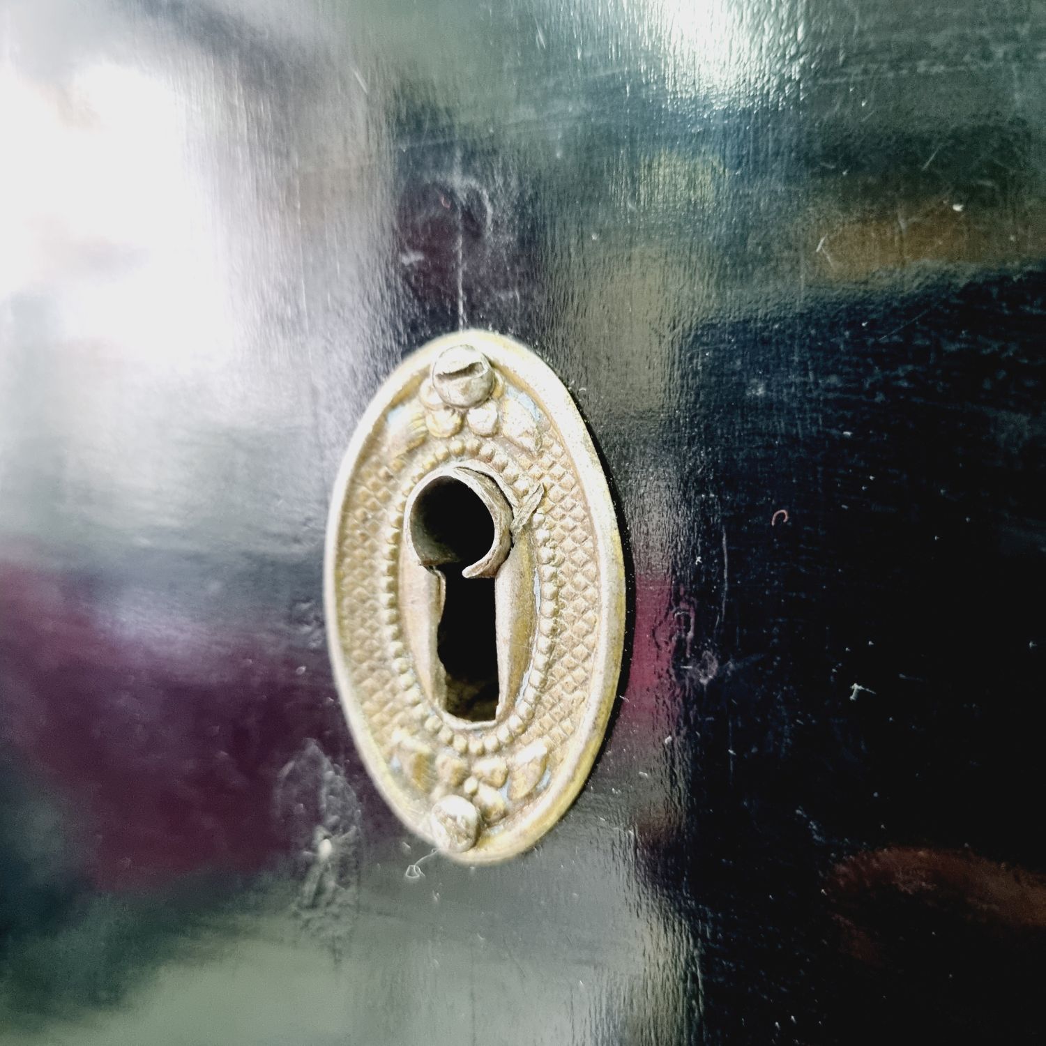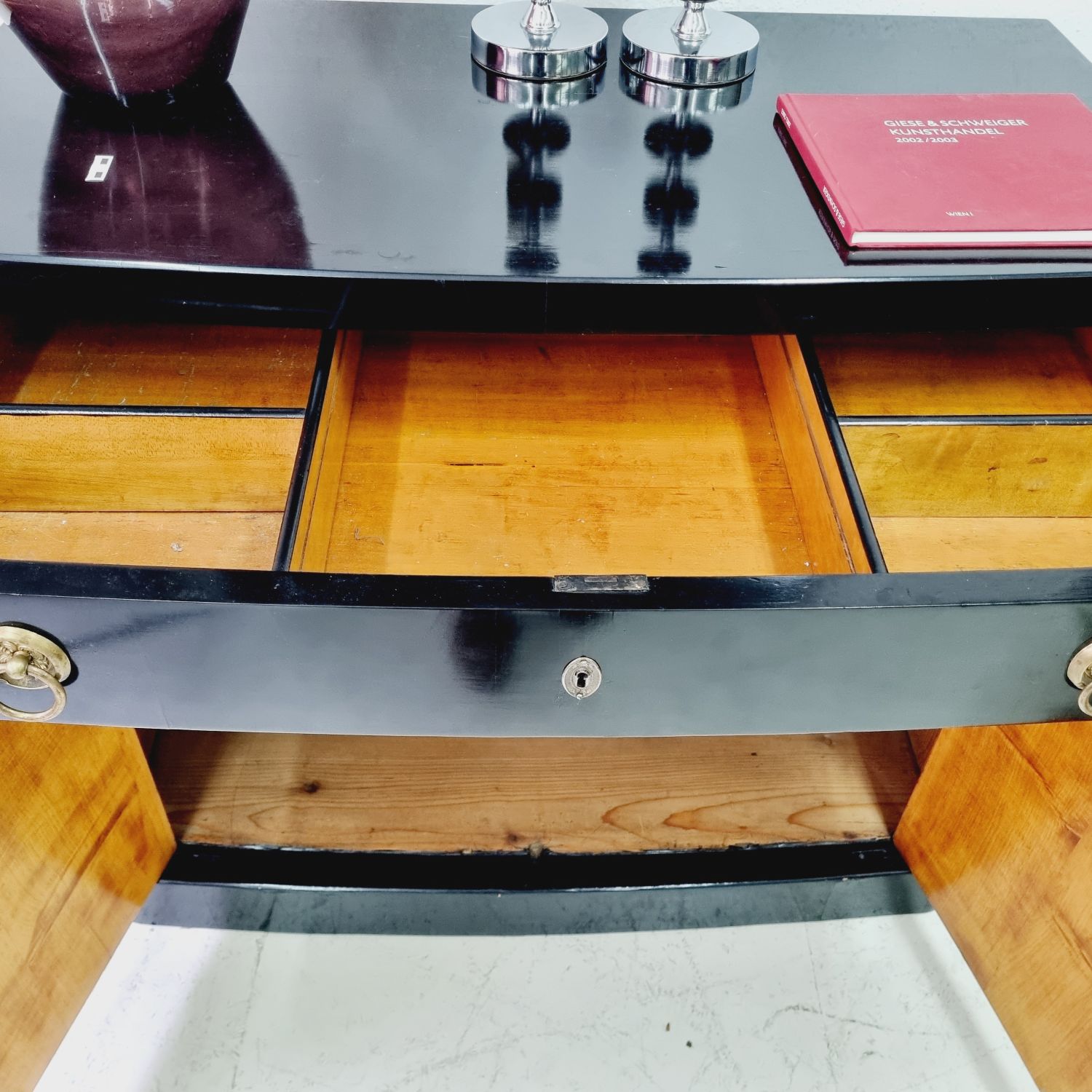 Elegáns, felül osztott fiókos, alul polcos, ebonizált , fekete biedermeier szekrény, eredeti réz verettel. Praktikus, frissen restaurált