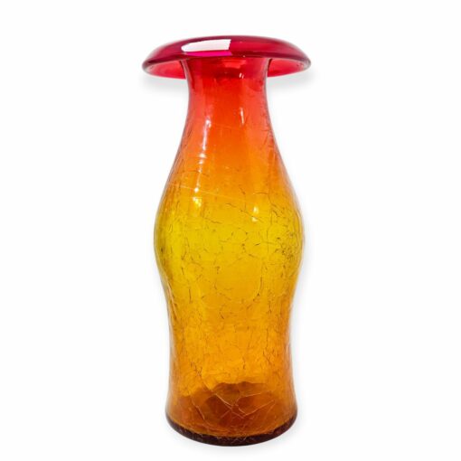 Repesztett üveg váza, tervezői darab. Joel Philip Myerc alkotása. 1966-ban került gyártásra a Blenco MCM üveggyár által. Színátmenetes, un.Mandarinváza. Méretei: 36 x 13 cm