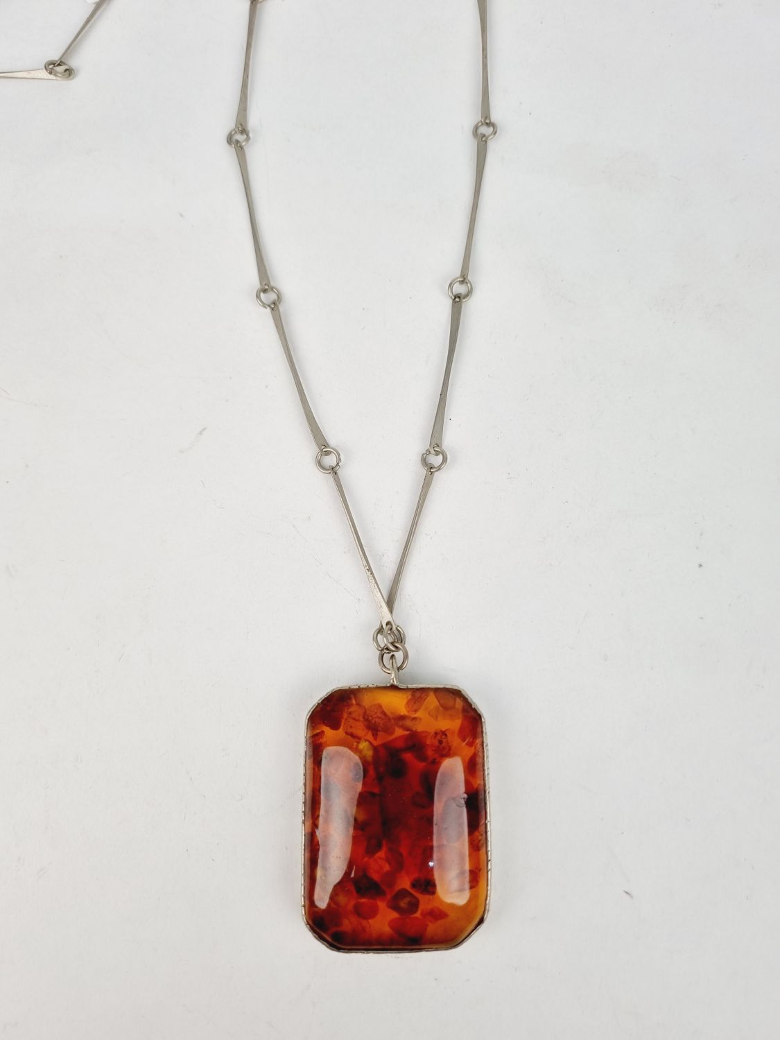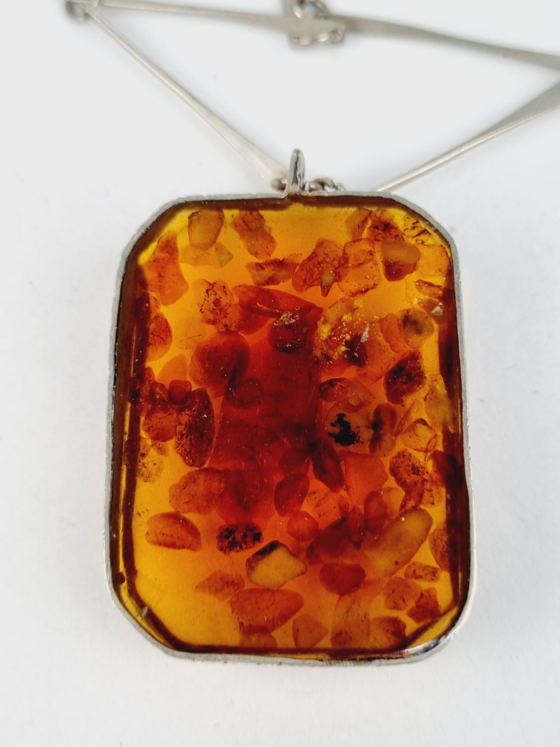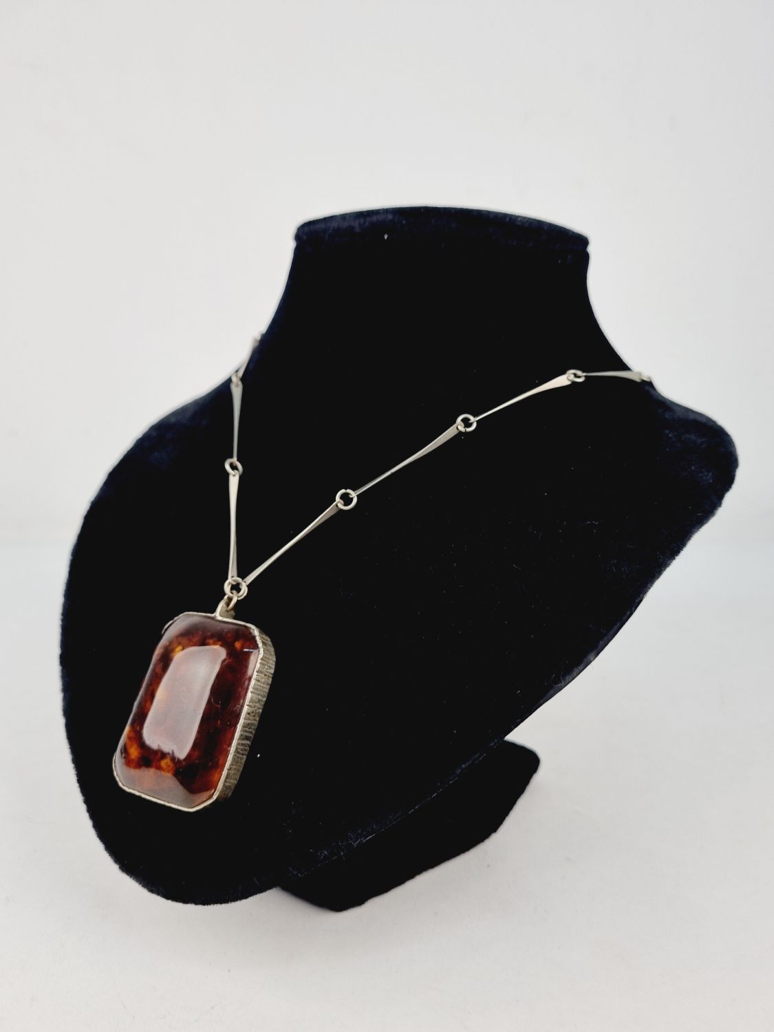 Mutatós vintage stílusú nyaklánc, borostyánkő medállal az 1970-es évekből.Az ásvány /fossziliált gyanta/ jótékony hatással lehet a szervezetre. Időtlen ékszer.
