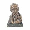 Hans Muller: Férfi mellszobor, bronz büszt az 1920-as évekből. Csodás karakterformálás, szép antik patina jellemzi. Hans Muller /1873-1937/ az egyik legnevesebb német portré mellszobrász és állatszobrász volt. Jelzett. Méretei: 20 x 13 x 13 cm.
