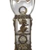 Szecessziós üvegváza, részletesen kimunkált bronz díszelemekkel. Kiváló allapotú. Méret: 27x10x8cm.