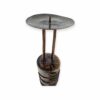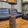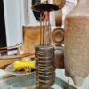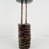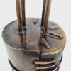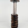 Impozáns méretű, brutalista stílusú gyertyatartó az 1970-es évekből. A tárgyat a markáns formavilág mellett a vörösréz és a fa anyagának organikus fúziója teszi különlegessé.