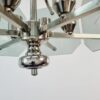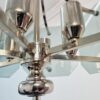 A füstüveg csillárt minden esetben egyféle titokzatos elegancia veszi körül.Kitűnő választás a folyosó megvilágítására, de a lakás apróbb szobáiban is remek fényforrás. Elektromosan felújított, müködő használható állapotban.