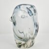 Elegáns és stílusos váza,mely fúvott üvegből készült.Különleges, egyedi megjelenésű, teljesen vízálló,friss virágok tárolására kiváló.Otthoni dekorációként főleg skandináv stílusú enteriörbe illik. Méretei: 20x11x11 cm. Az alján apró csorbulás van.Az 1970-es években tervezték.Jelzetlen, feltehetőleg cseh származású iparművész alkotása.