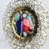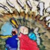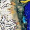 Dekoratív fali dísztányér, mely fúziós üvegtechnikával készült. Középrészen absztrakt minták vannak beágyazva, külső részét buborékos mintázat dísziti. Érdekes lakberendezési kiegészítő.Korának megfelelő állapotú. Méretei: 40 x 40 x 5 cm