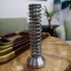 Rugó formájú, króm, design gyertyatartó. Gyertya méretétől függően állítható a magassággal.