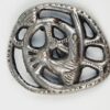Iparművészeti alkotás. Egyéni stílus és formavilág jellemzi ezt a kitűzőt amely az 1960-as években született. Korának megfelelő állapotú.Méretei: 5x4x1 cm