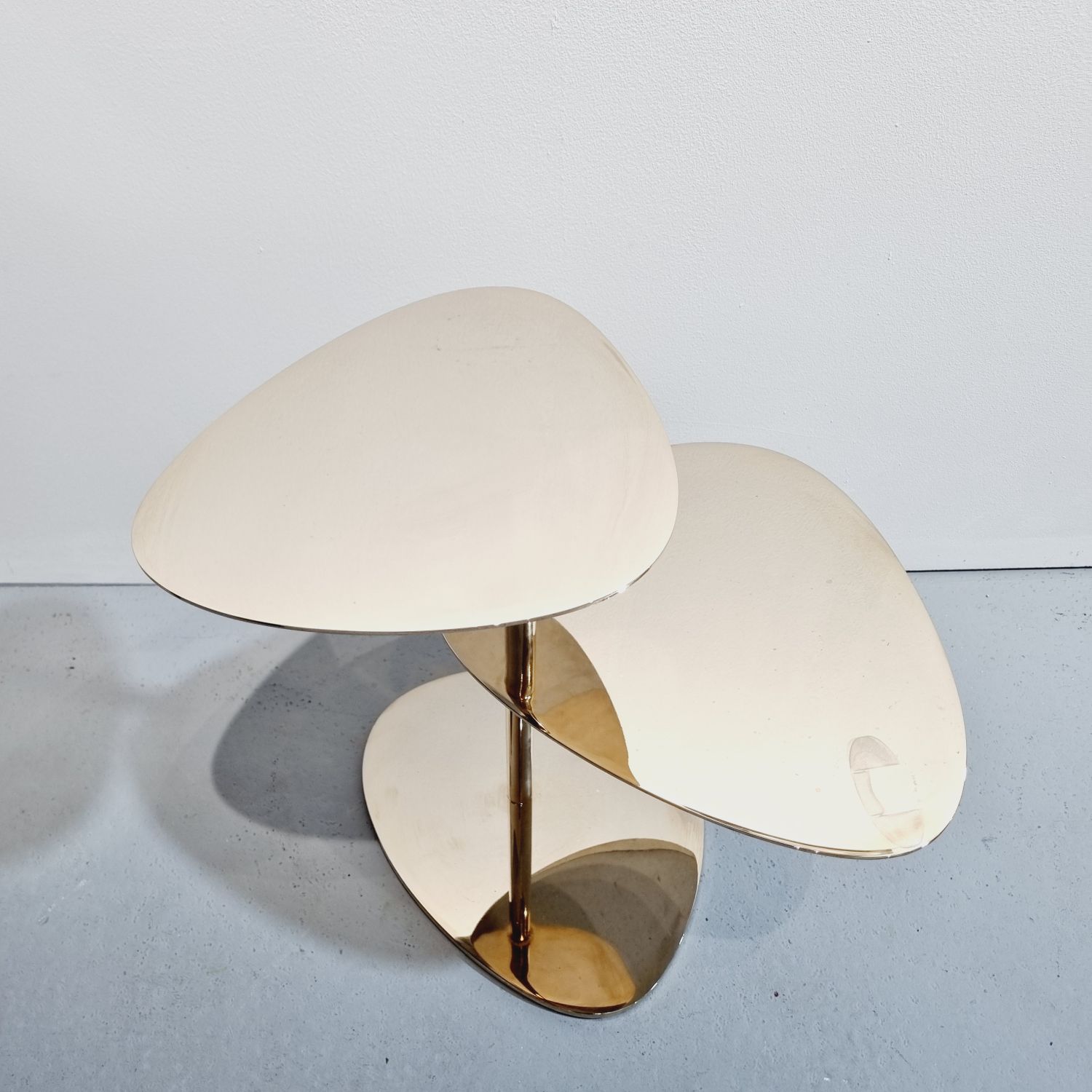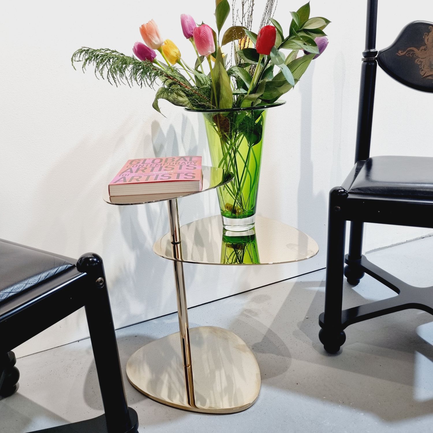 Désirée olasz márka Yori nevű asztal, melyet a neves japán tervezőpáros, Setsu & Shinobu Ito álmodott meg. A váz és a lapok sárgarézből készültek. Elsősorban lerakóasztalként (side table) funkcionál, ideális kanapé mellé könyvek, italok vagy dekorációs tárgyak elhelyezésére. mérete: 56x40x40cm