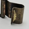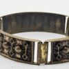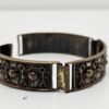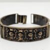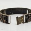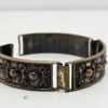1965 körüli, íves tagokból szerelt,vörösréz karkötő.Érdekes vintage darab, dekoratív művészi munka. Csattján jelzett: Dömötör Méretei: 18×1,6 cm