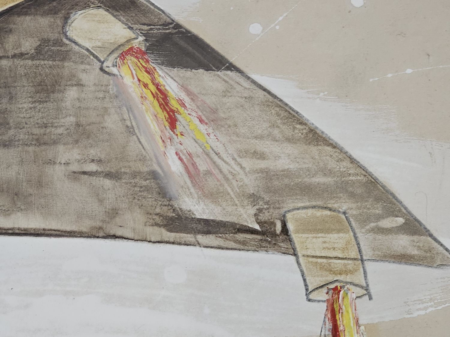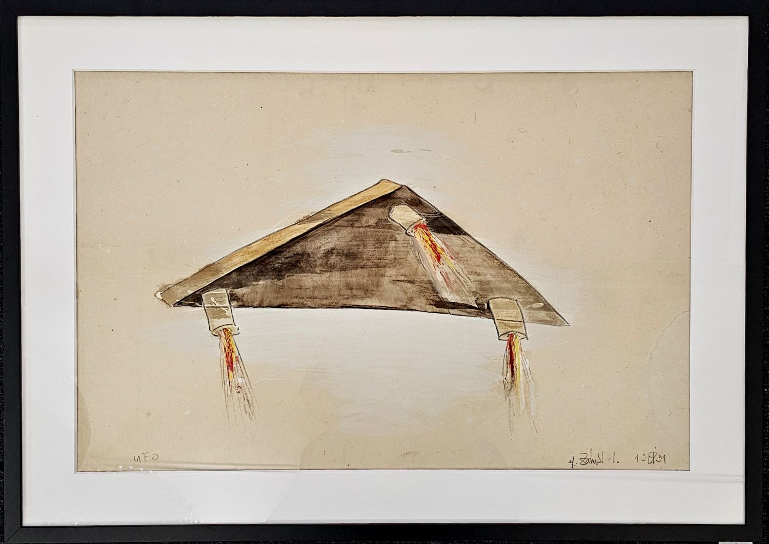 vegyes technika, papír, 46 x 71 cm, J.j.l: ef. Zámbó I. 1991, b.l.: UFO