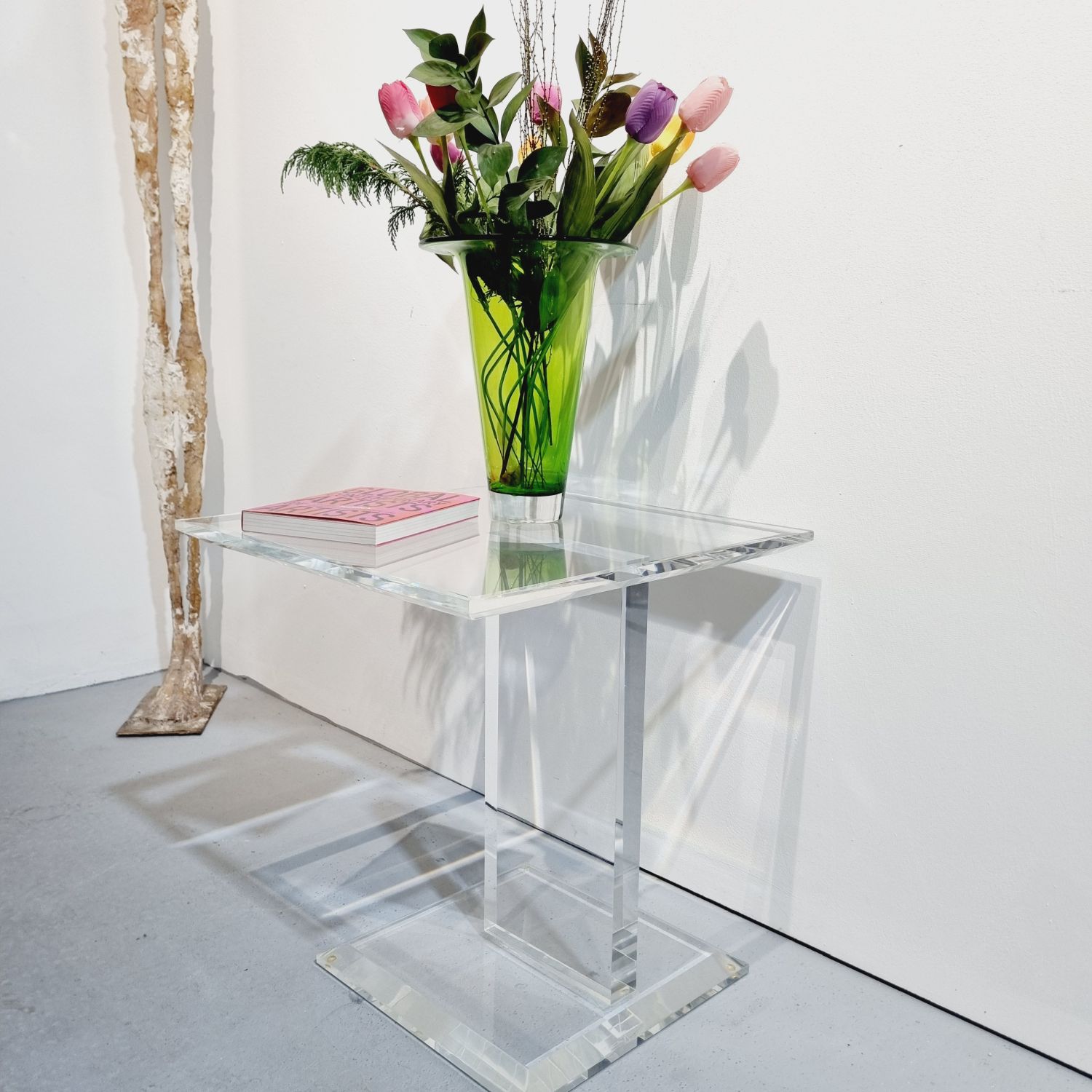 Modern, minimalista stílusú akril (plexi) asztal, letisztult formavilágú ,teljes átlátszó kialakítása miatt a “lebegő” bútorok hatását kelti, nem nehezíti el vizuálisan a teret.