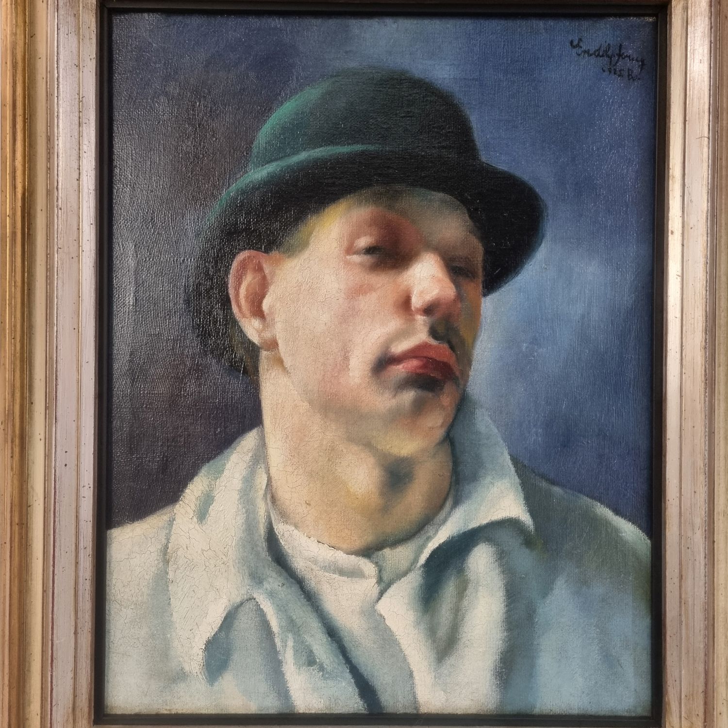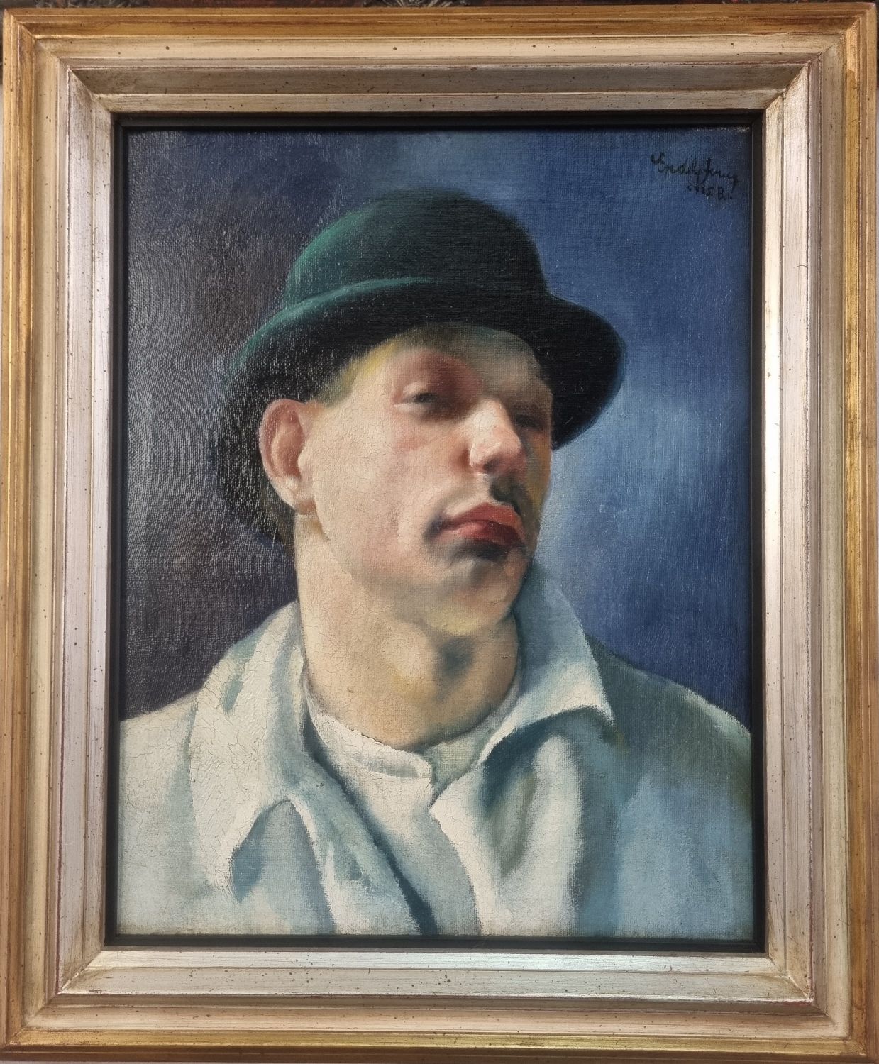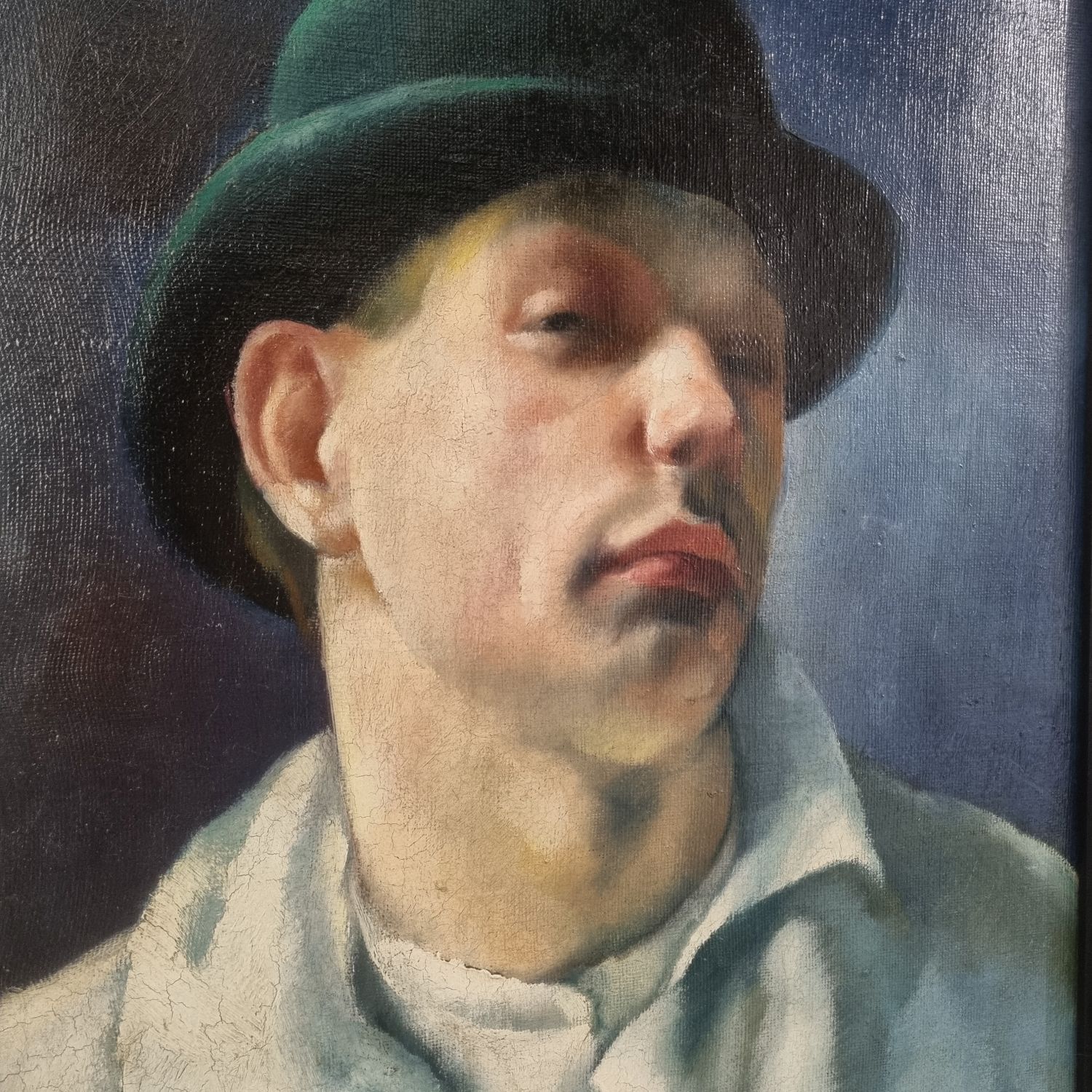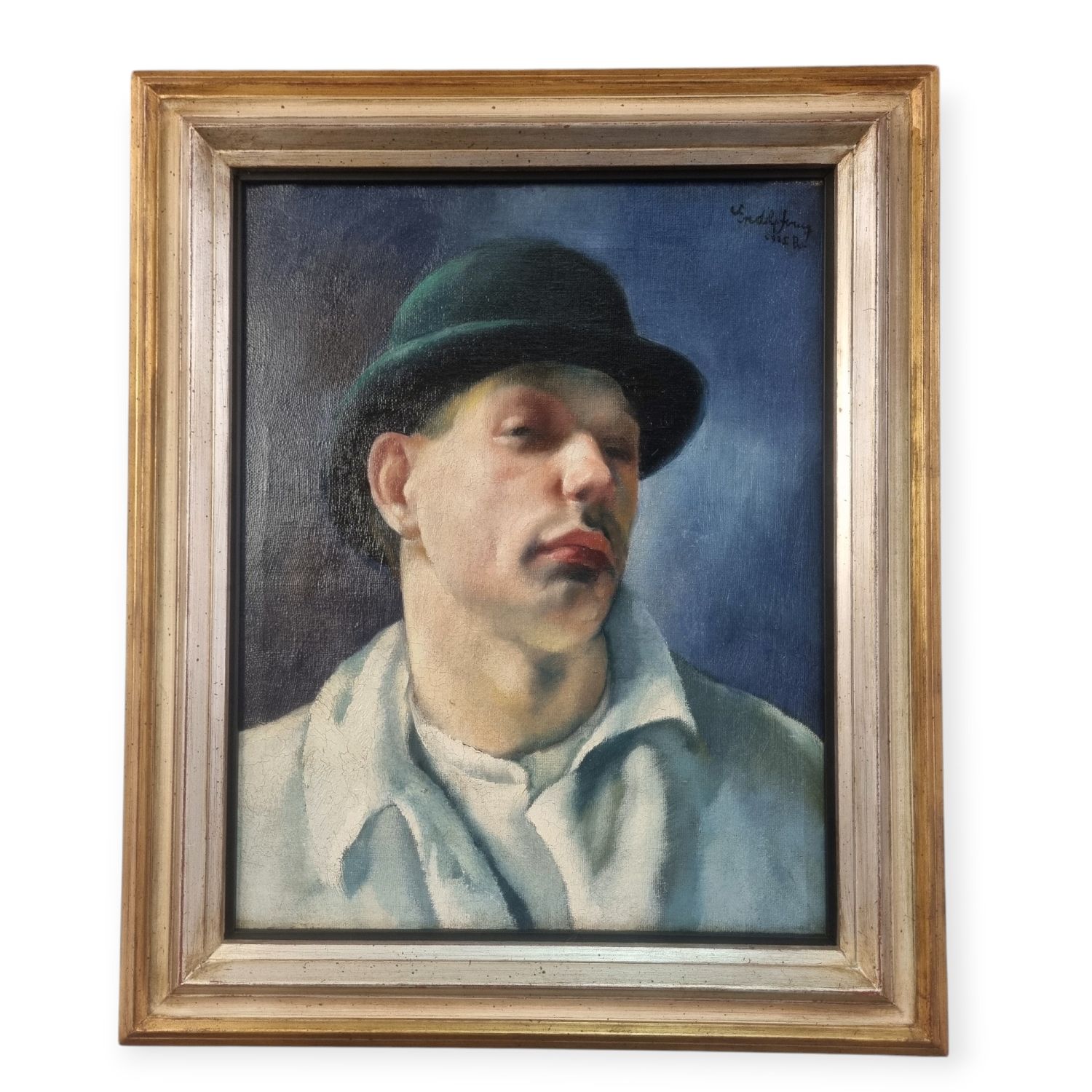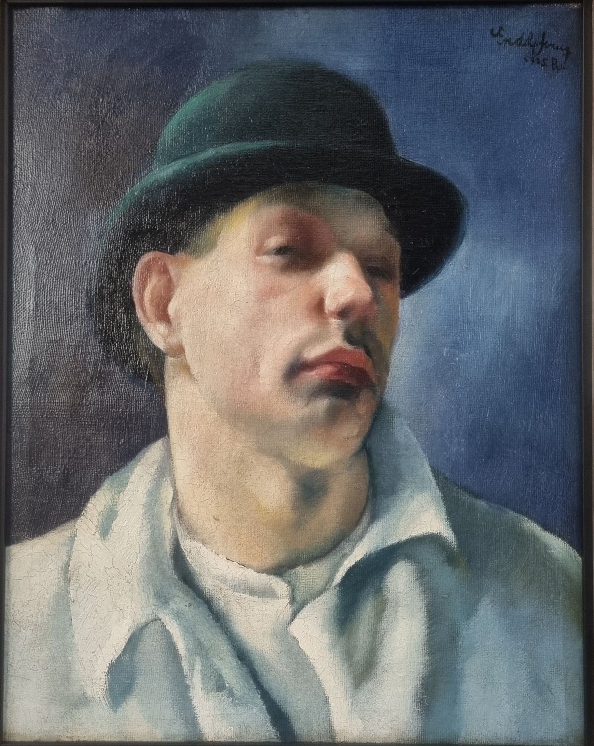 Erdélyi Ferenc: Önarckép o.v. j.j.fent Erdélyi 1935. Erőteljes, férfias karaktert ábrázoló műalkotás a fiatal festőről, virtuóz expresszionista