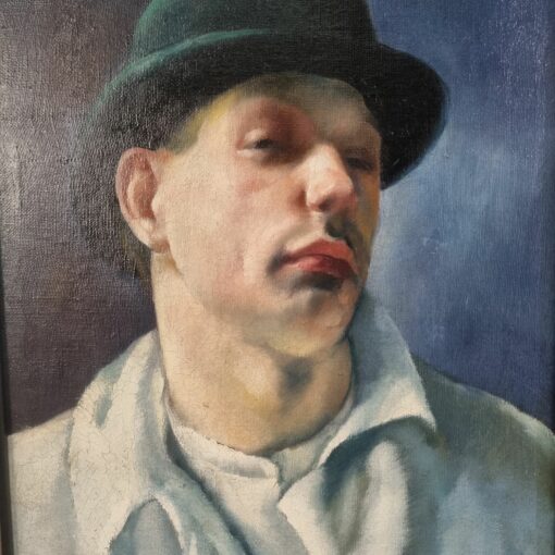 Erdélyi Ferenc: Önarckép o.v. j.j.fent Erdélyi 1935. Erőteljes, férfias karaktert ábrázoló műalkotás a fiatal festőről, virtuóz expresszionista