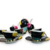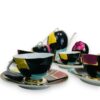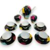Fantasztikus 6 személyes Bremer & Schmidt design kávéskészlet a 60-as évekből. Rendkívüli forma és dekoráció. Asszimetrikus formabontó darab. Minden darabja sérülésmentes.