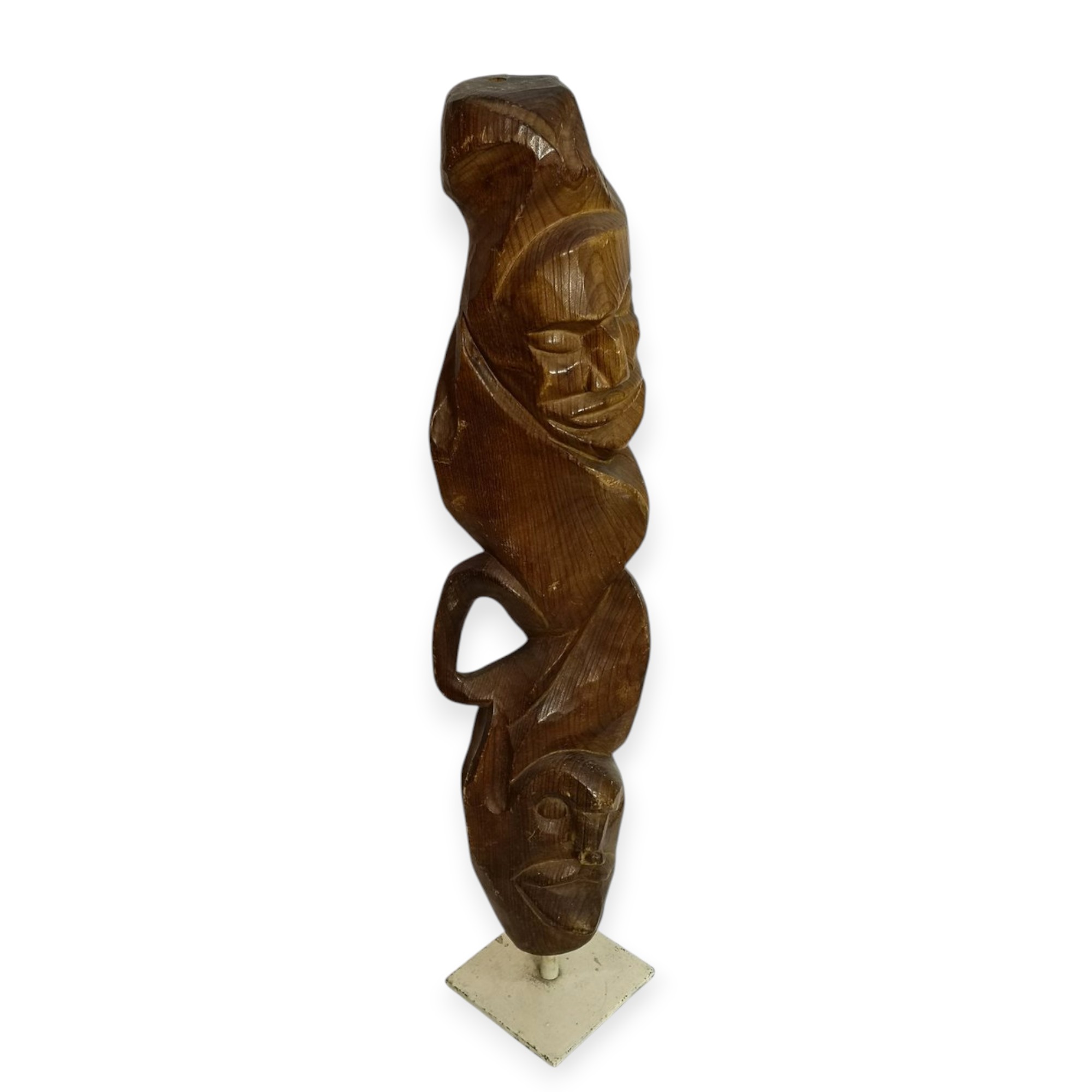 Nagyméretű keményfa “Totem oszlop”, faragott fa szobor, korából fakadó kisebb kopások, ismeretlen alkotó munkája. Mérete: 85x17x17cm