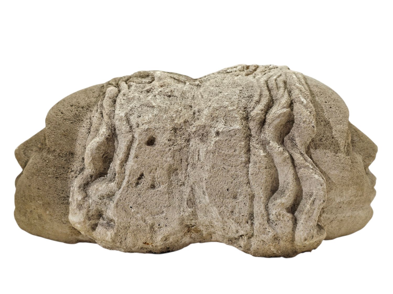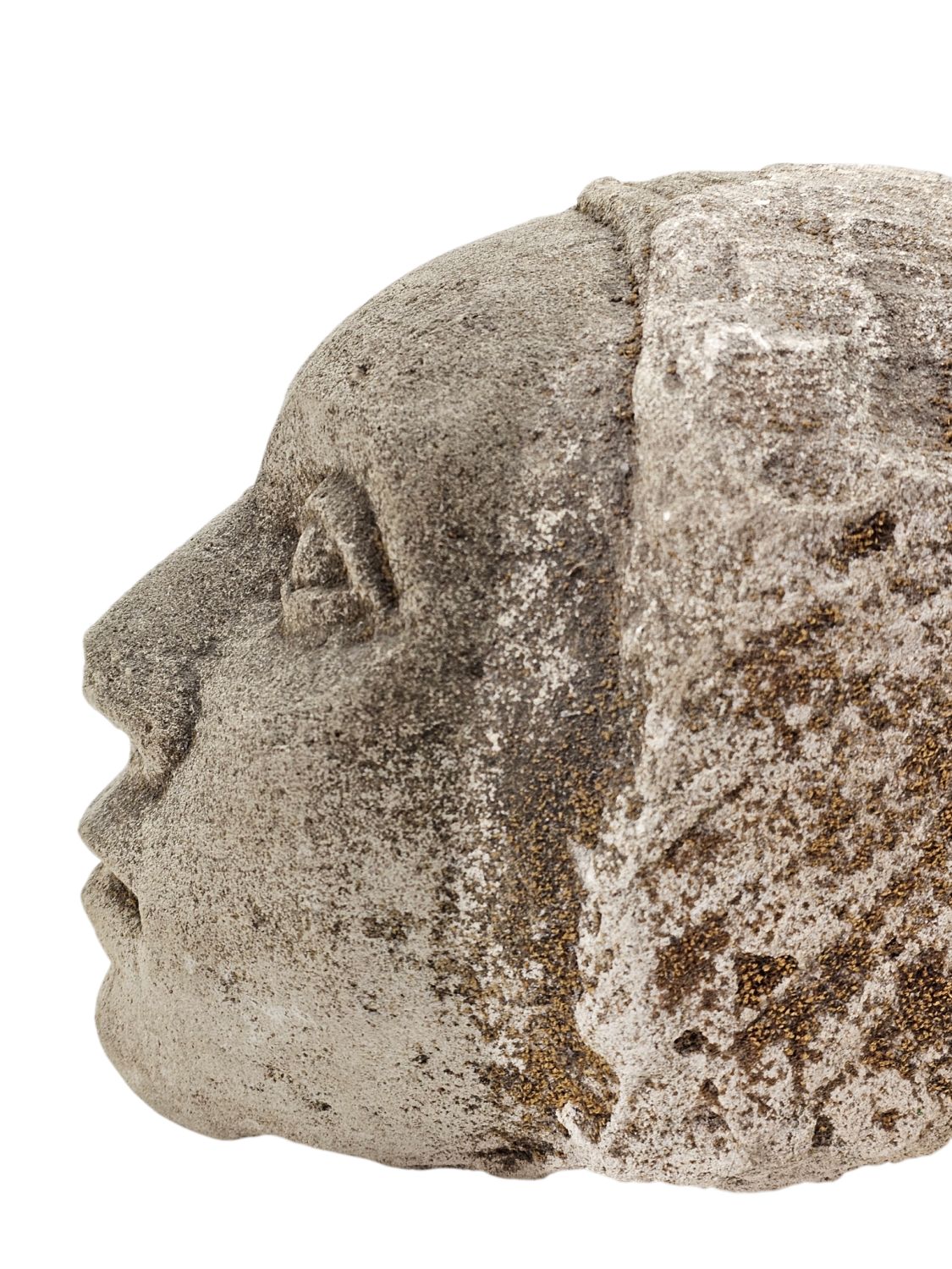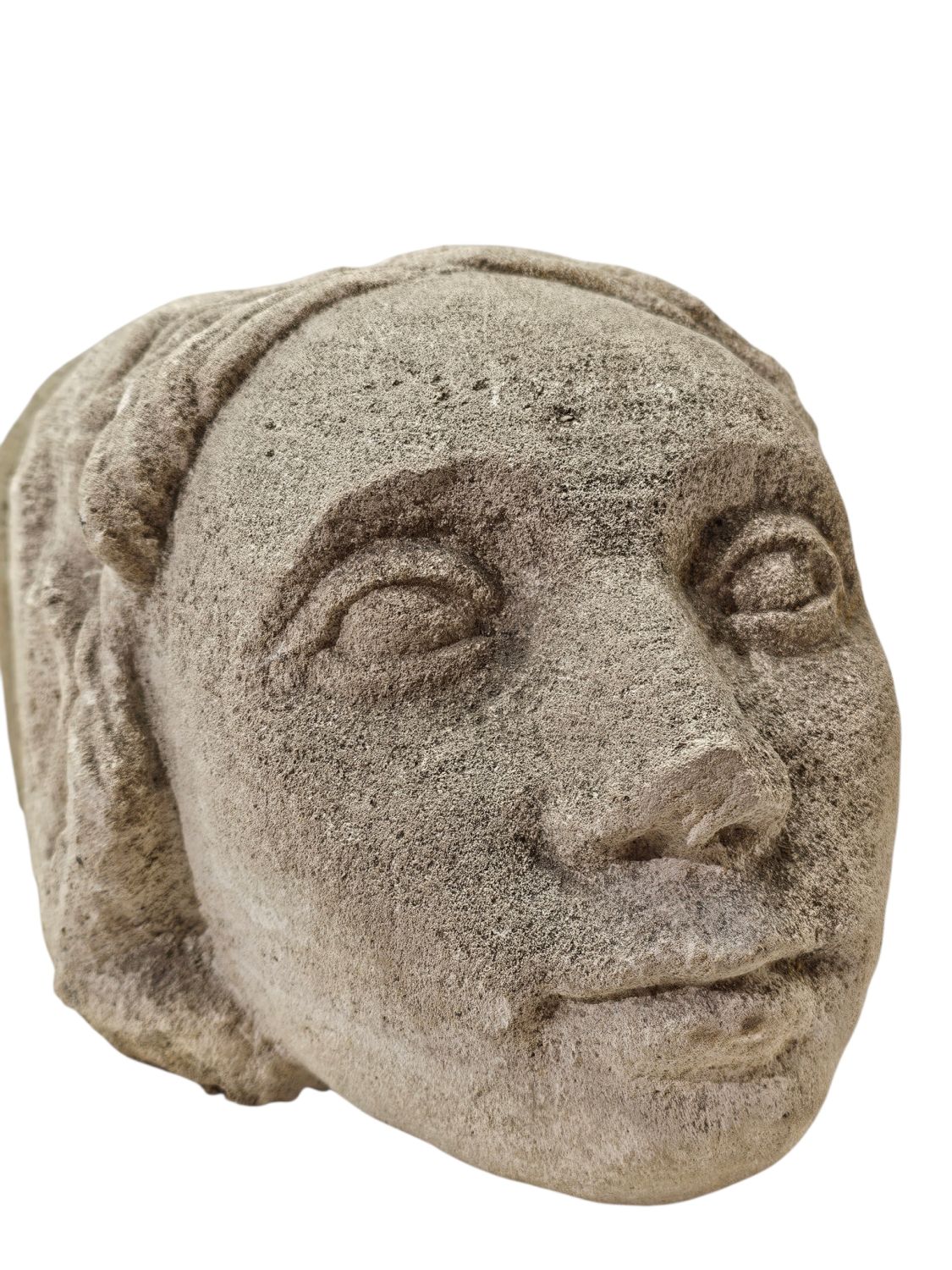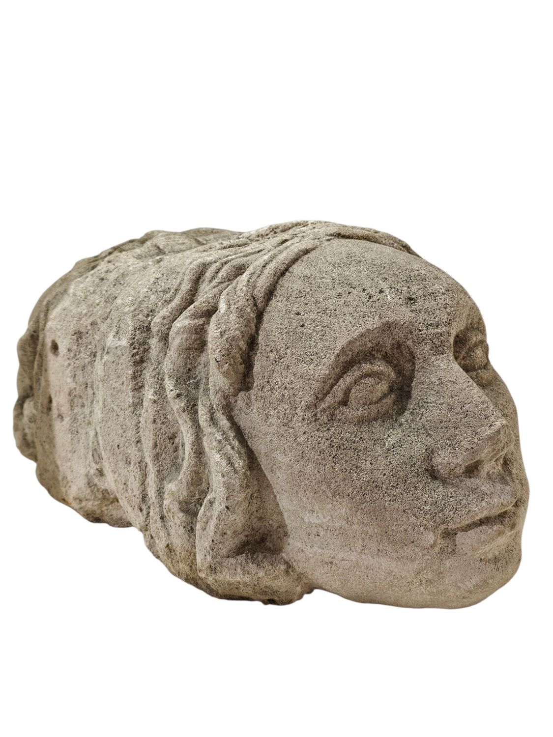 Ókori görög vagy etruszk homokkő fej, Leucothea istennőt ábrázolva. Másolat, általában a hellenisztikus korra datálható az eredetije. Jó állapotú. Izgalmas díszítőelem. Méretei: 19 x 41 x 18 cm.