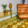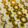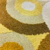 Mid-century modern szőnyeg, a kőszegi Latex Lakástextil Vállalat által készített, az 1970-as években. Élénk sárga színeivel és körkörös mintájával igazán jó lakásdekoráció. Jó állapotban, sarkán apró égés folttal.