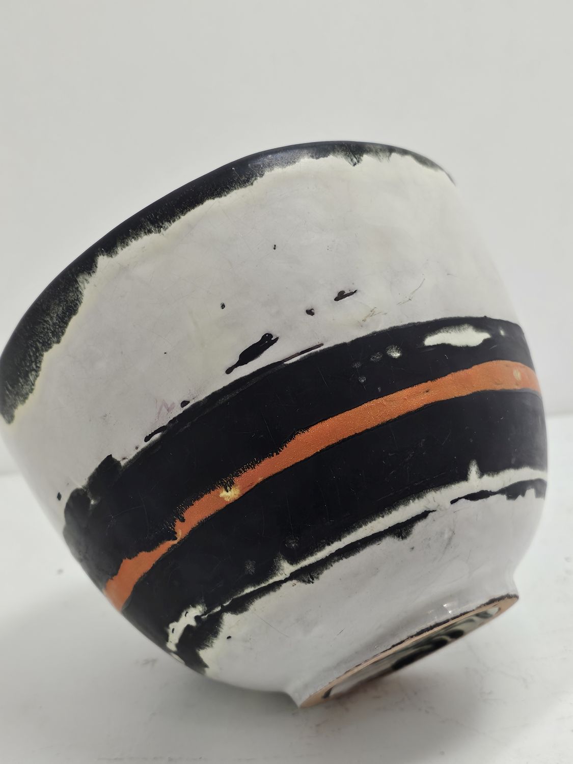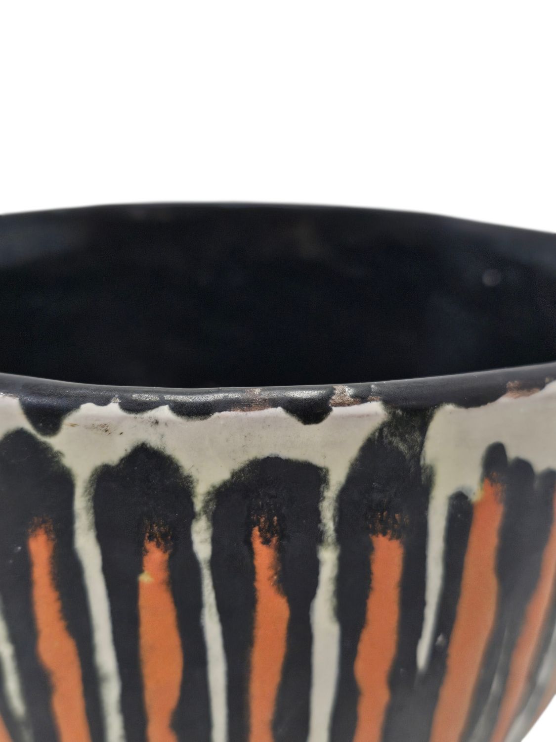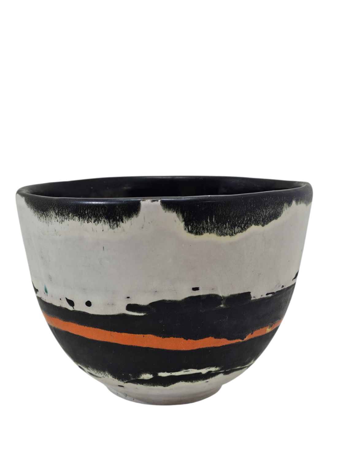 Gorka Lívia által tervezett különleges kaspó az 1960-as évekből, ami saját készítésű mázzal készült. Erőteljes, plasztikus hatású, különleges színkezelés jellemzi.