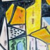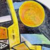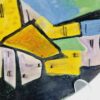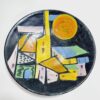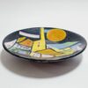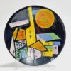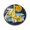 Városképes falitál, Györgyei Zsuzsa iparművész alkotása az 1970-es évekből. Kézzel festett mázas kerámia. Korának megfelelő állapotban. Méretei: 28 x 25 x 5 cm. Jelzett.