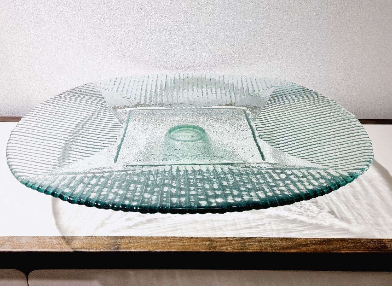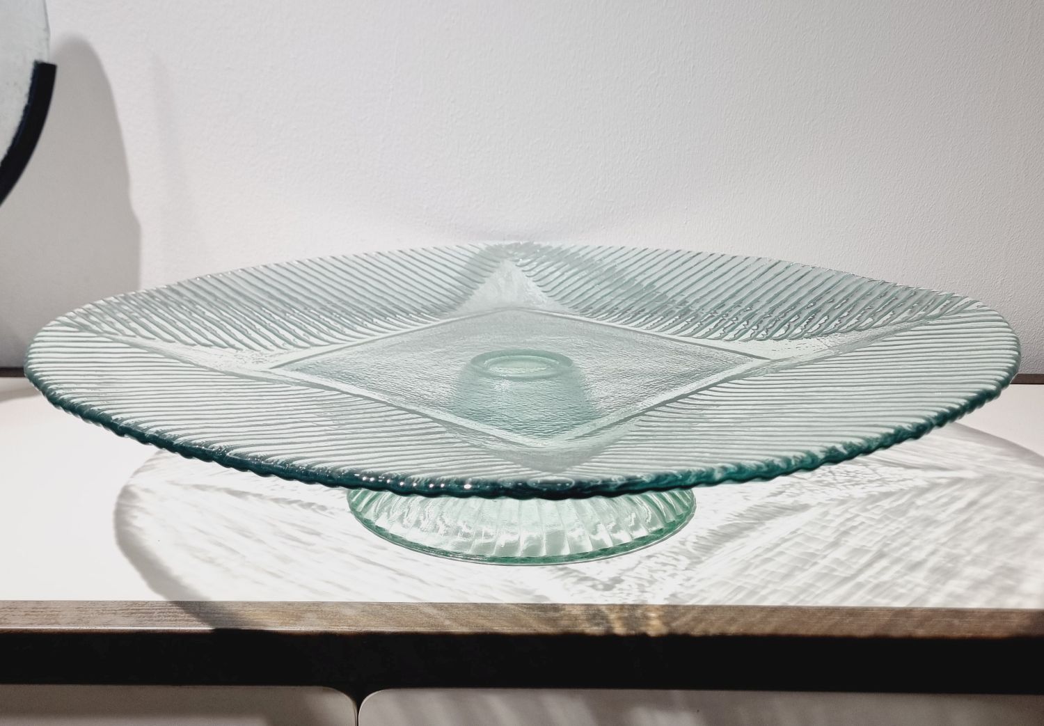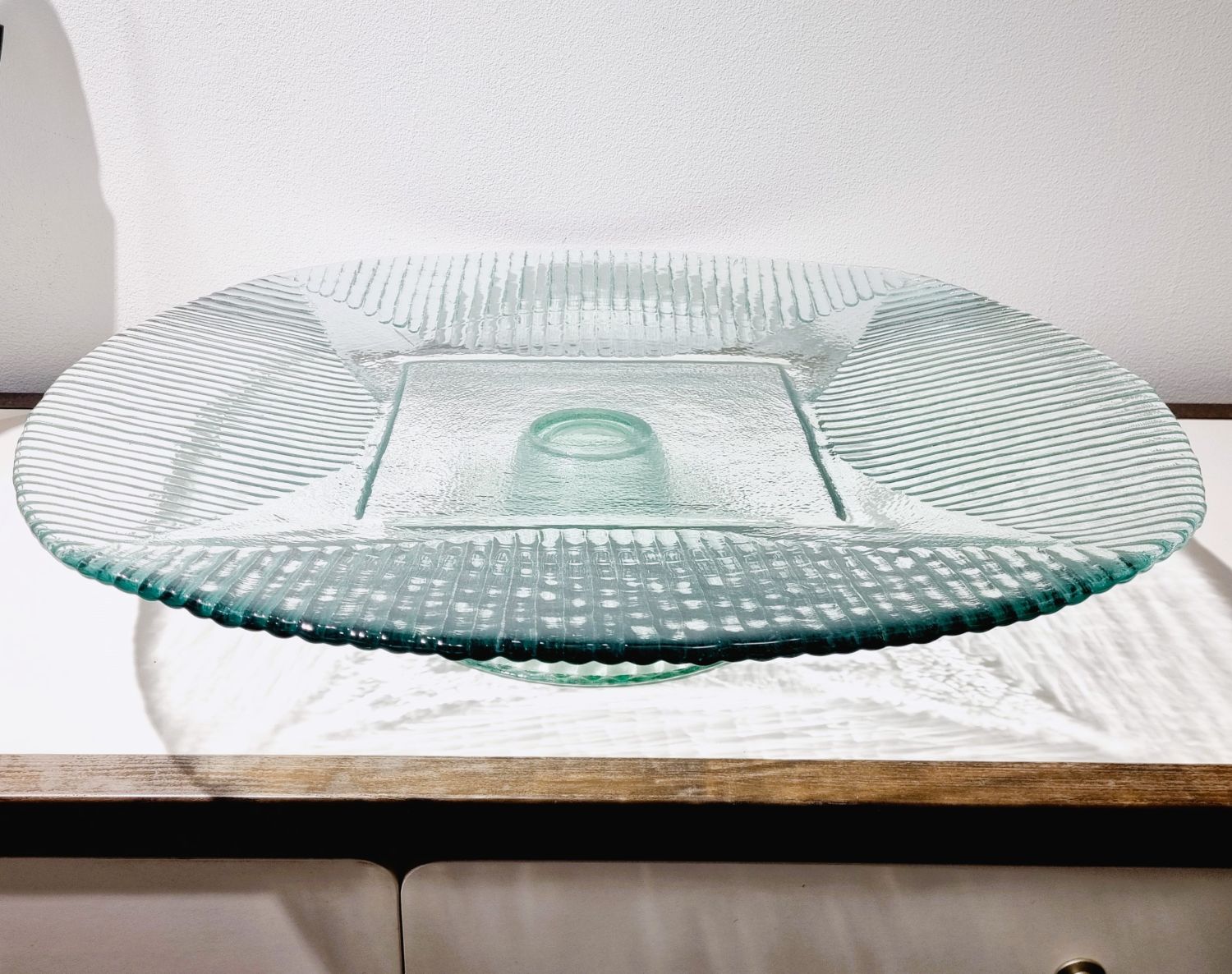 Hatalmas művészüveg kínálótál vagy torta tál az 1970-es évekből
