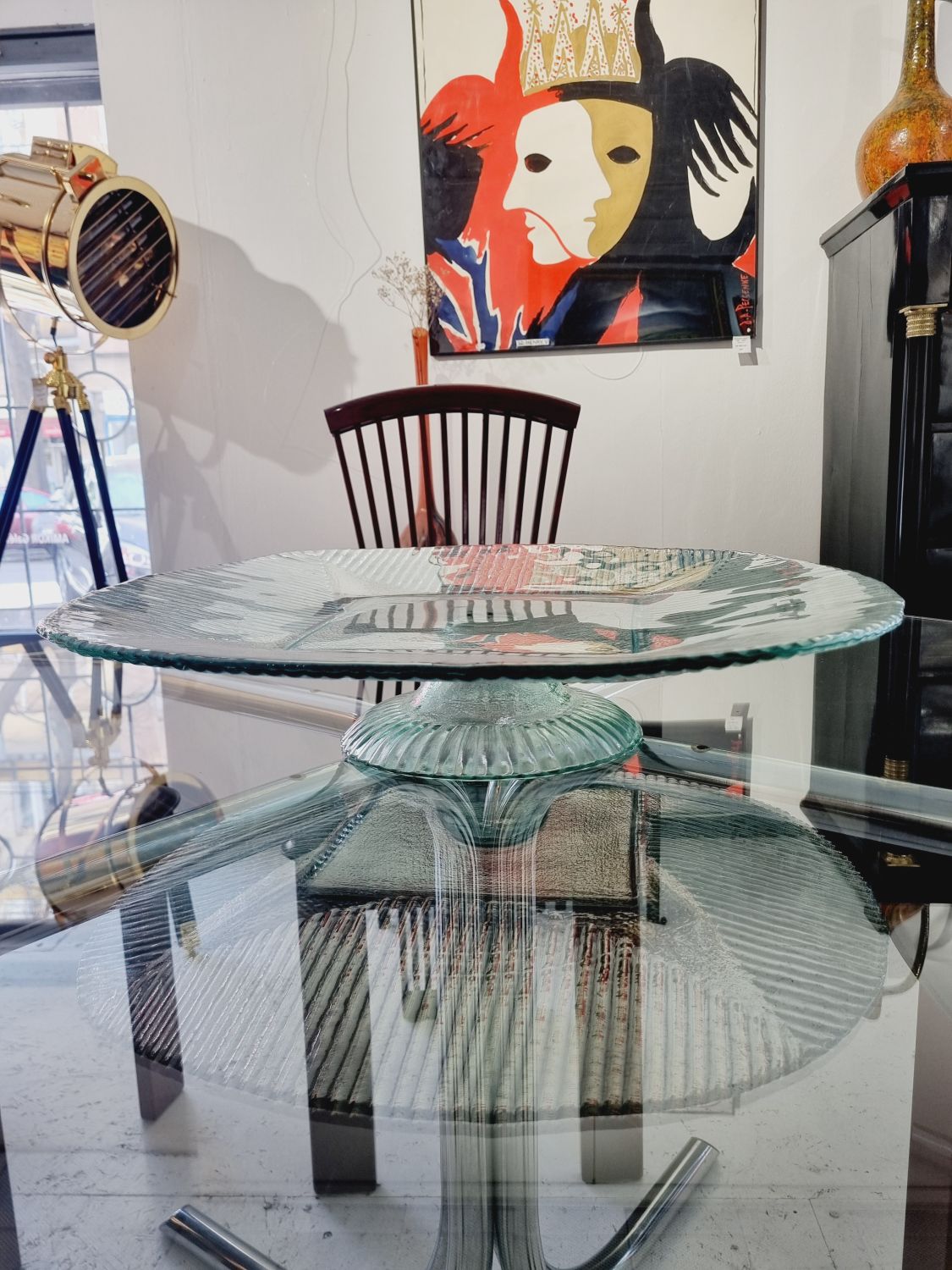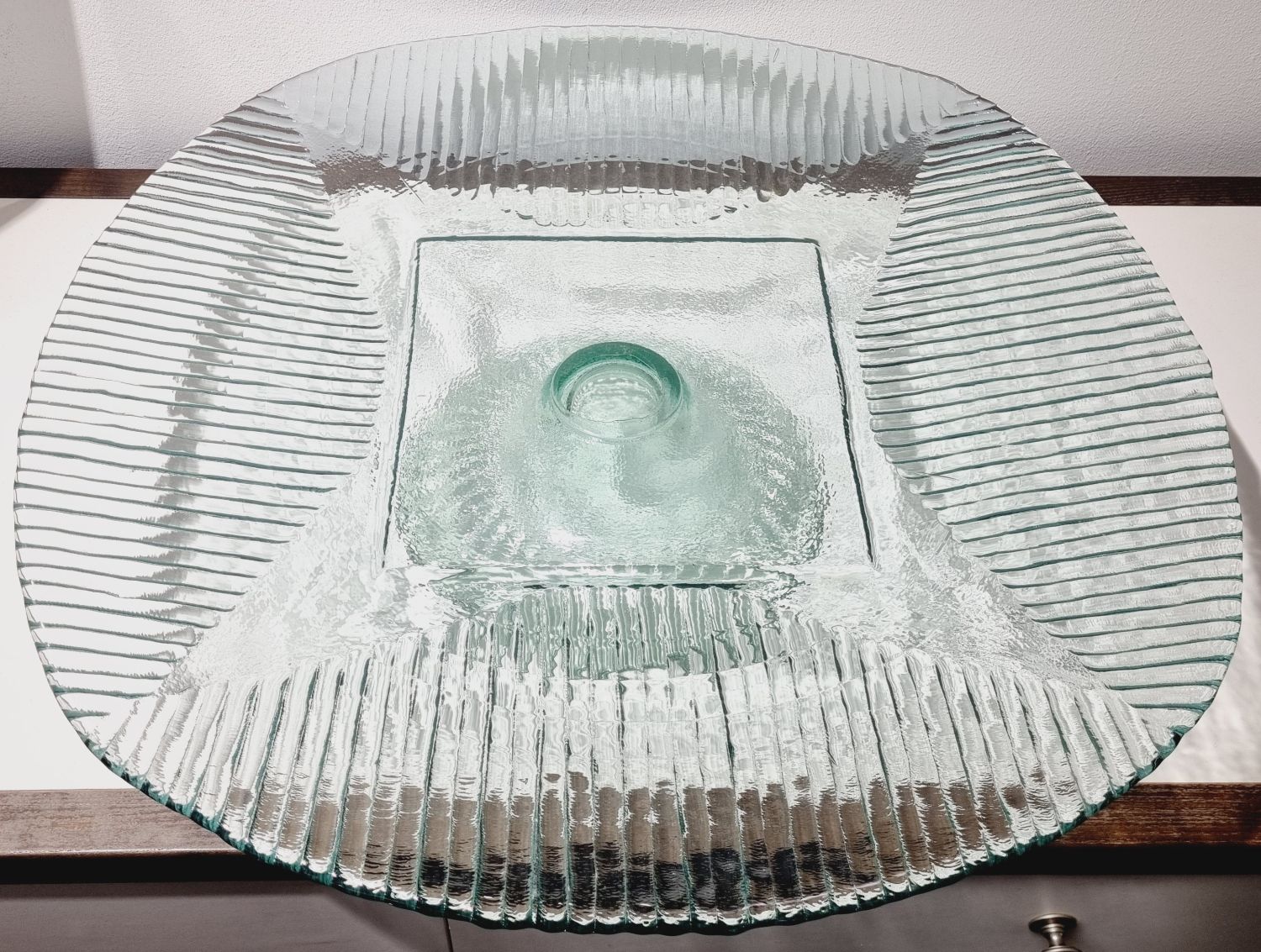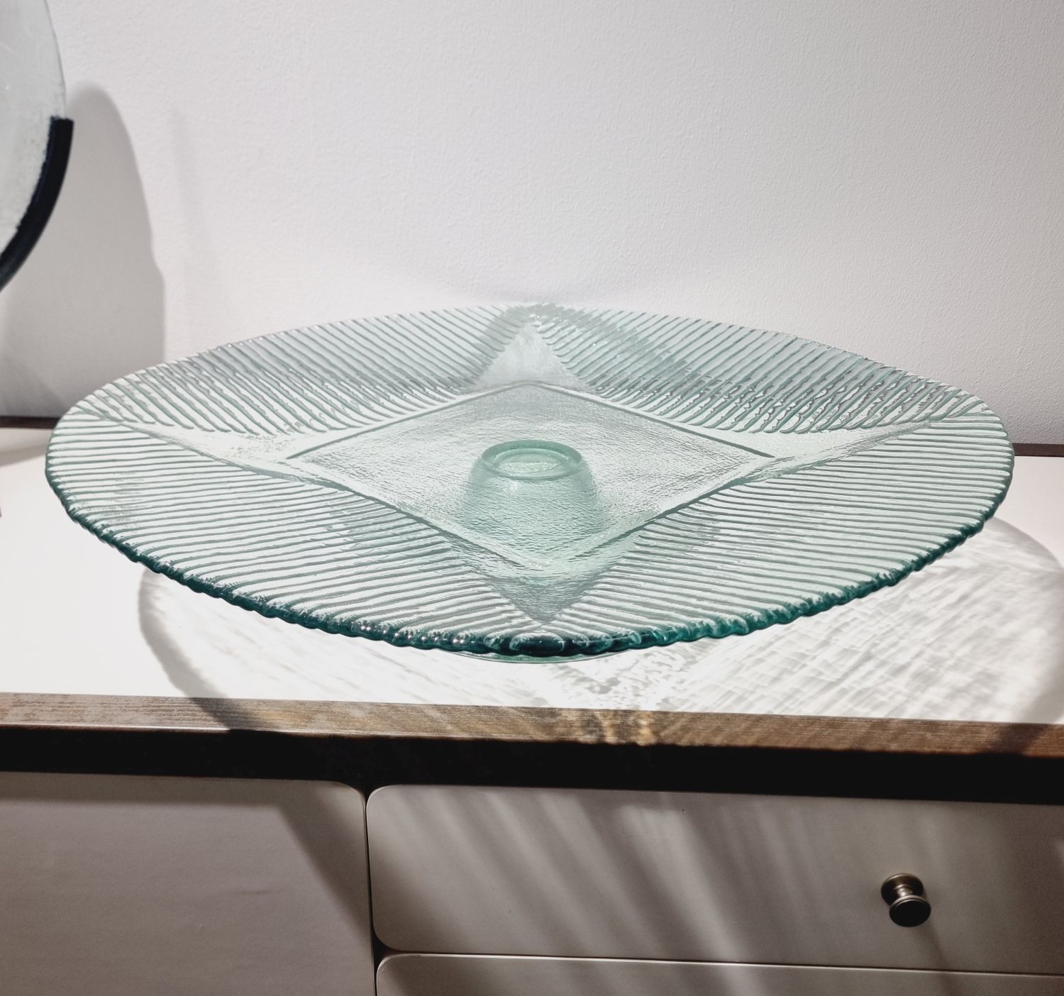Hatalmas művészüveg kínálótál vagy torta tál az 1970-es évekből