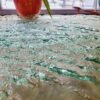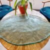 Ismeretlen alkotó, 1970-es évek, rogyasztott, gazdagon texturált dombor nyomott üveg dísztál