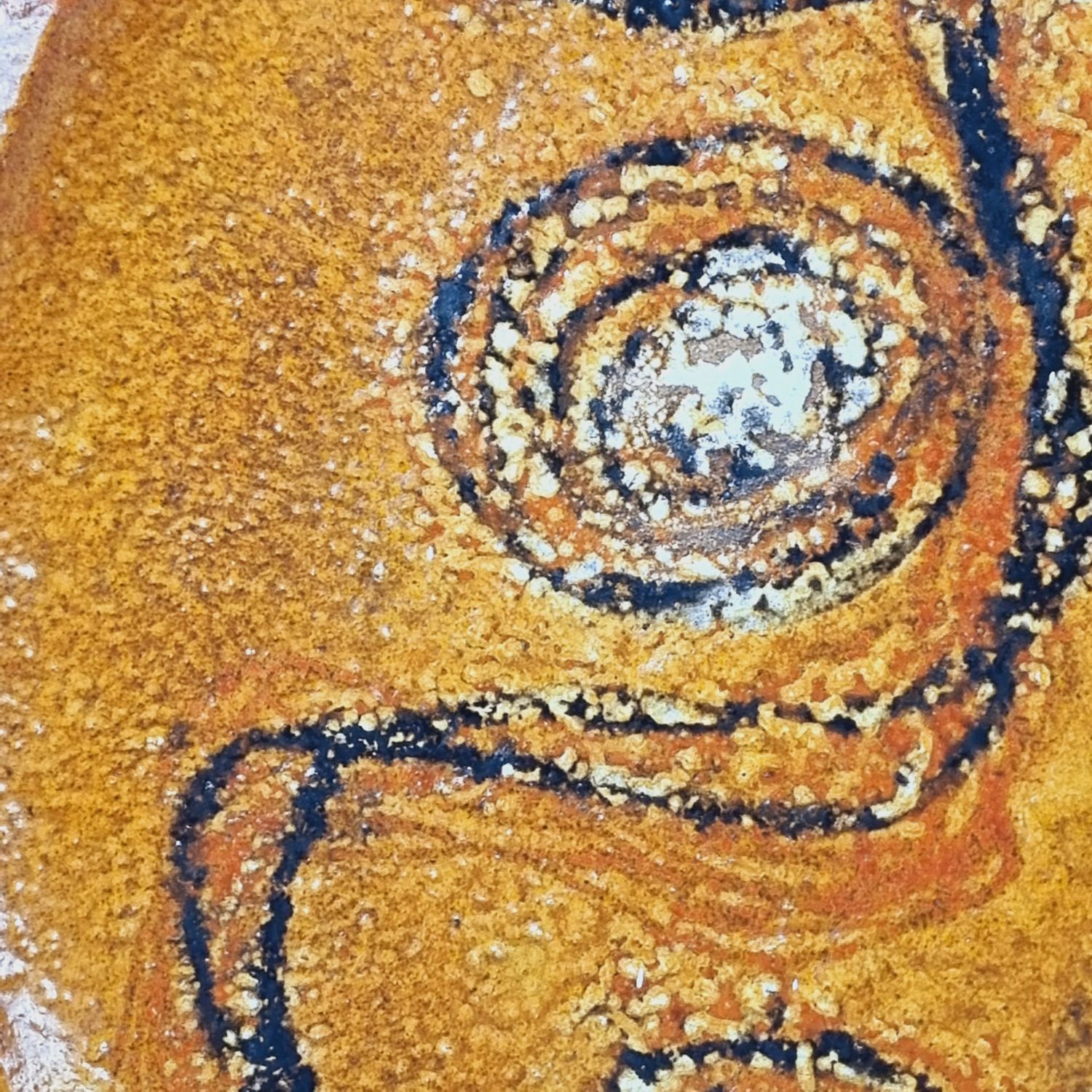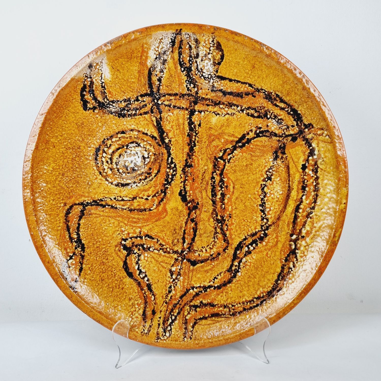 Hatalmas vintage mázas kerámia falitányér absztrakt motívummal