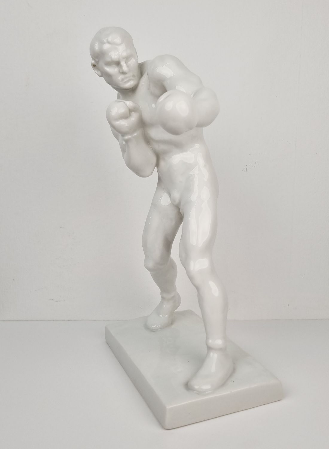 Herendi Bokszoló c. alapmázas porcelán szobor, G. Fekete Géza (1906-1976) tervei alapján