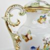 Viktória mintás herendi füles váza az 1970-es évekből. Részletgazdag, kézi festésű csodás vitrintárgy apró ragasztással a fogónál. Méretei: 26x15x10 cm