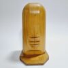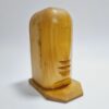 Dekoratív faragott fa szobor, formája stilizált arcra emlékeztet. Az 1970-es években készült iparművészeti alkotás brutalista stílusú műalkotás. Skandináv stílusú enteriőrben mutat a legjobban. Méretei: 27 x 19 x 13 cm.