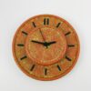 Iparművészeti kerámia falióra narancssárga zsugormázzal, hátulján akasztóval, a 60-as évekből. Egyedi falidísz modern óraszerkezettel, hibátlan állapotban, működőképes állapotban.