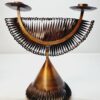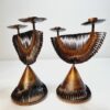 Jajesnica Róbert ötvös iparművész alkotása az 1970-es évekből.A 2 db gyertyatartó pár domborított vörösréz lemezből készült, karakteres brutalista stílusú műtárgy. Mérete: 28x16x14cm