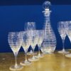 Különleges, exkluzív, dekoratív, csíkos, csiszolt 10 darabos JG Durand francia boros készlet. Boros palack nagy gömb dugóval, 4db 2dl-es pohár , 5db 3dl-es borospohár