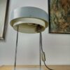 Vintage asztali lámpa, 1960-as évekből. Szürkére festett fém lemezek , krómozott pálca állványon. Szép állapotban, eredeti kábellel és kapcsolójával elérhető.