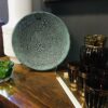 Mid-century kerámia falitányér, amely Karda Imre által készült 1960-as években. Fekete alapon fehér zöld színű zsugormázzal dekorálták. Szép állapotban található, hátulján jelzett: a művész aláírása látható.
