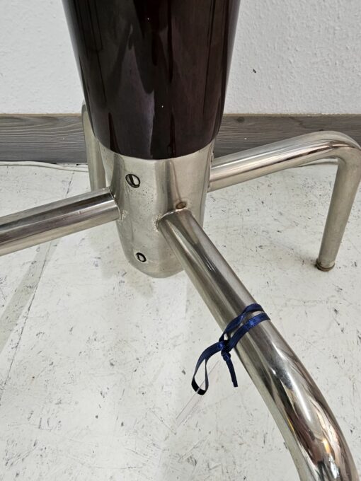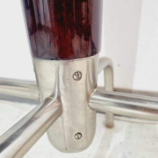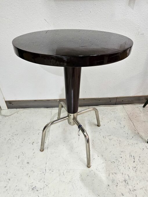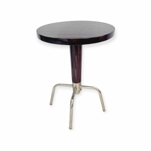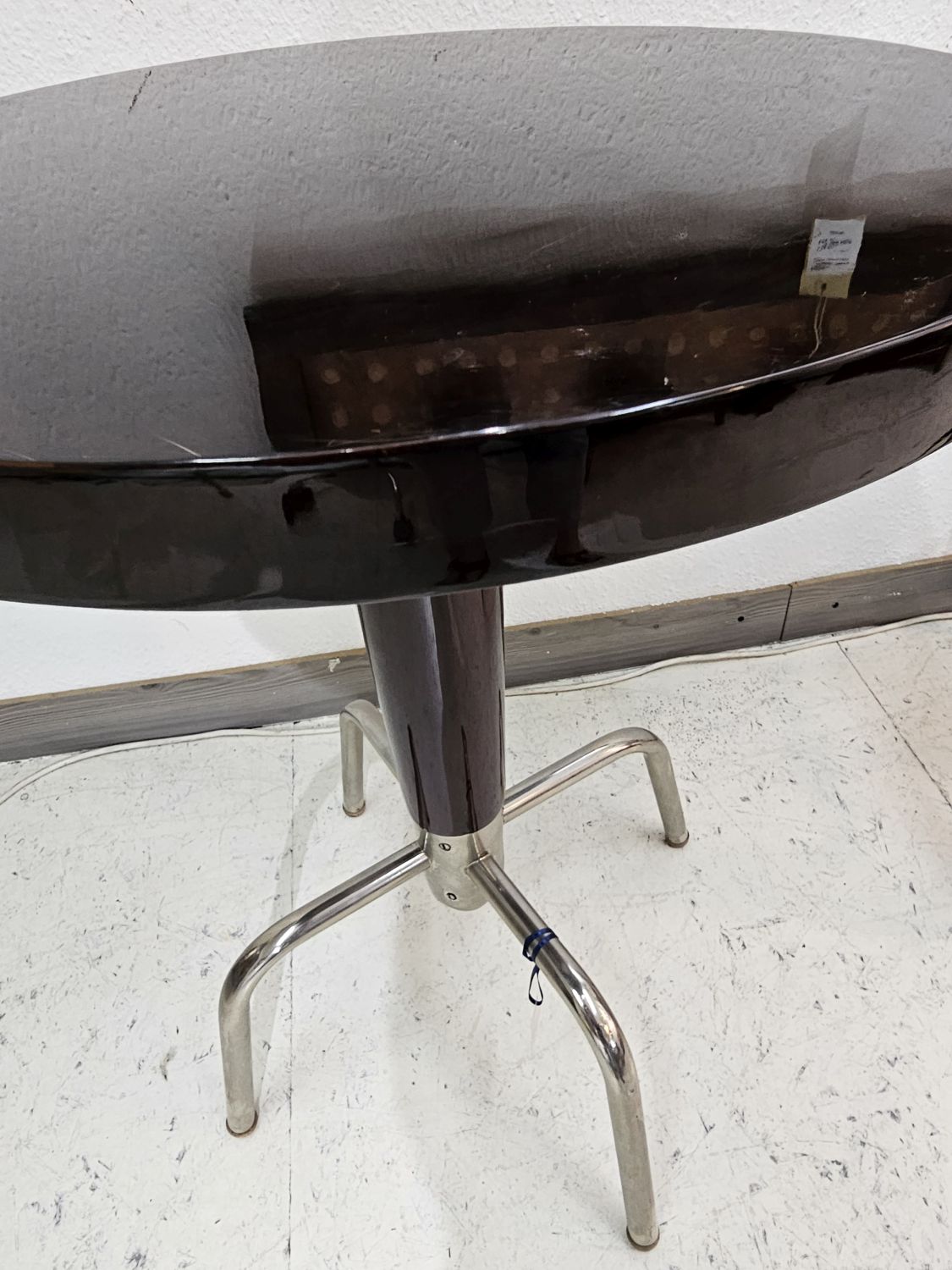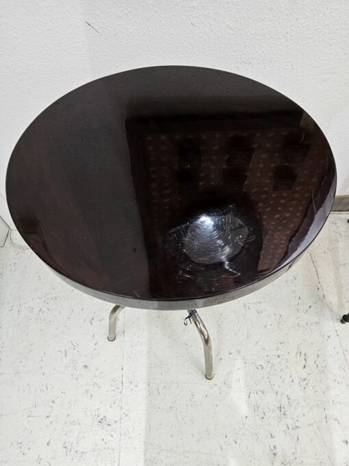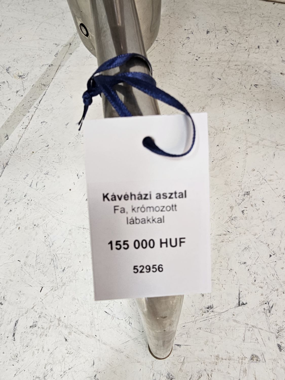 Modern kávéházi asztalka az 1960-as évekből. Nemcsak praktikus bútordarab, hanem design elem is. Különleges karaktere üditő látványt nyújt az enteriőrben. Korának megfelelő állapotú. Méretei: